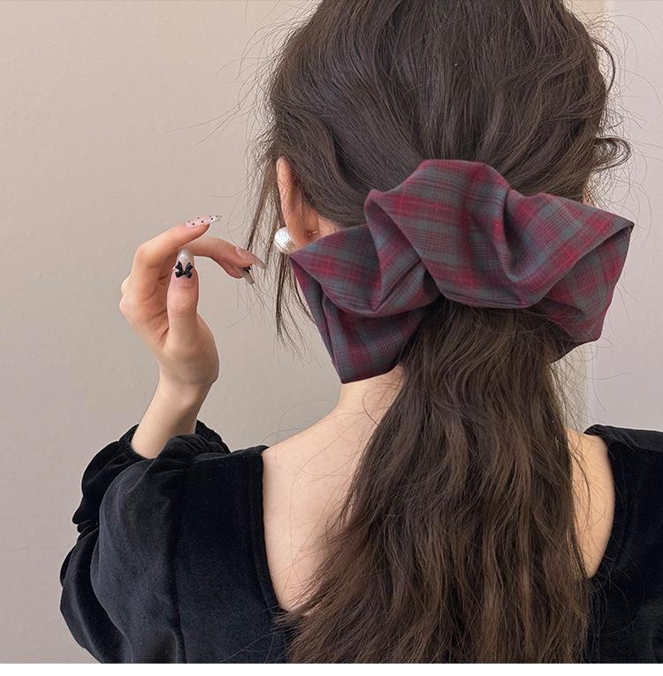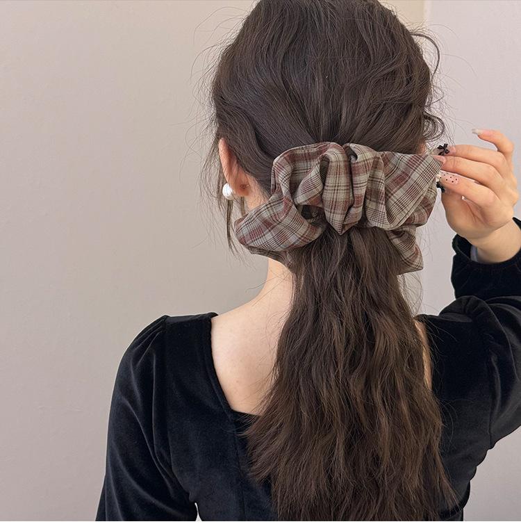 Anillo para el cabello de tela escocesa coreana de intestino grueso para mujer 2024 nuevo estilo elegante de alta gama cuerda para el cabello de bola coleta baja cuerda para la cabeza