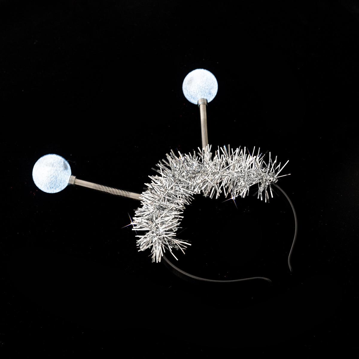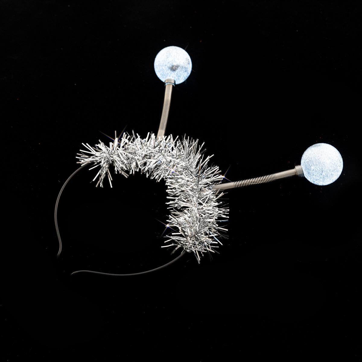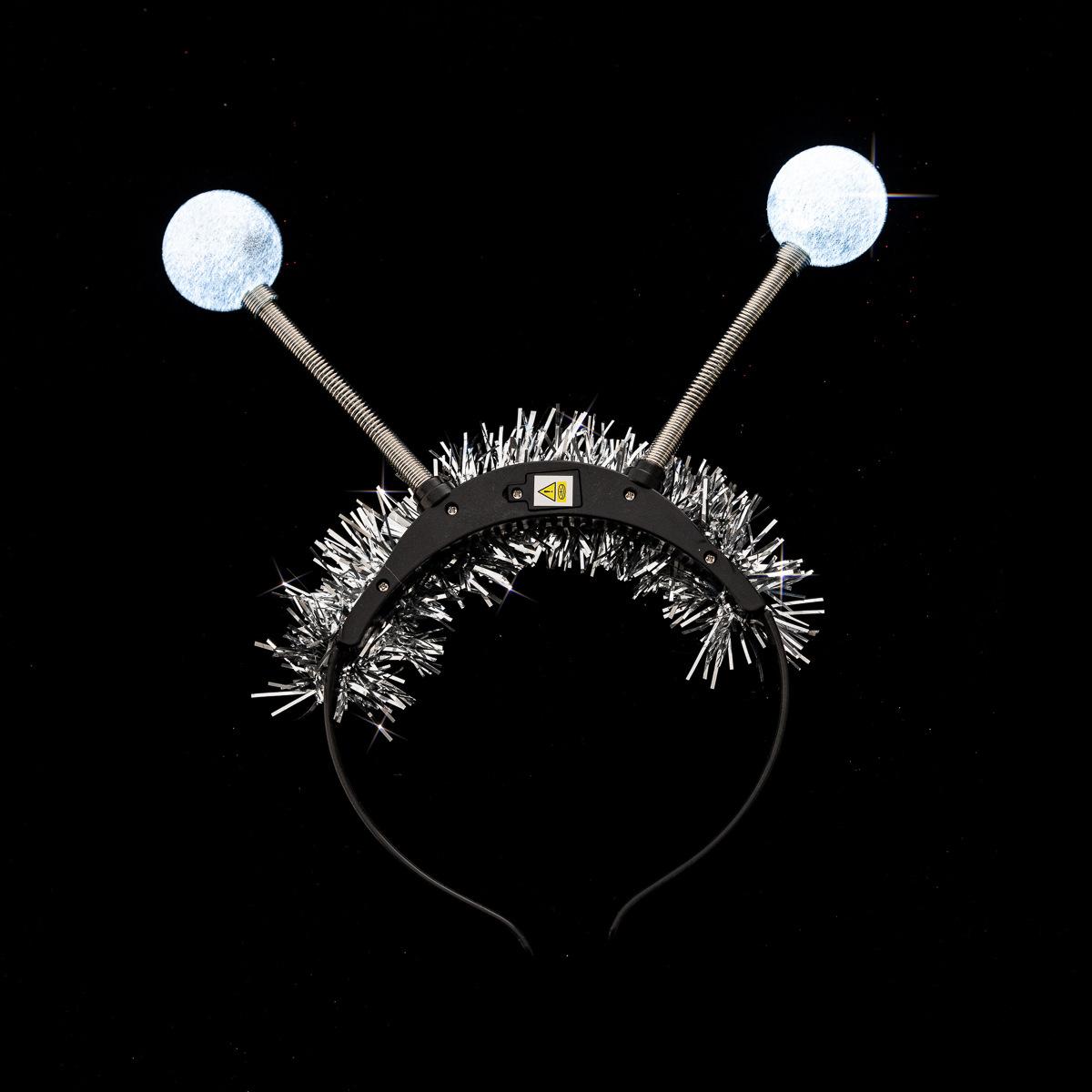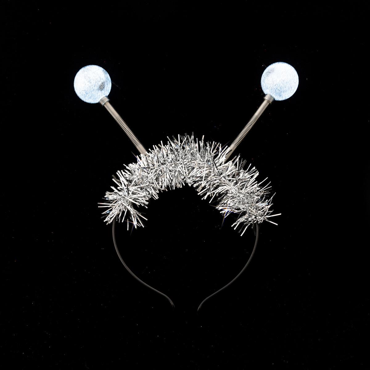 Compra Tocado Navideño Plata Blanco Alienígena Diadema de Bola de Resorte Fiesta Disfraz Concierto Tops Diadema Luminosa al por mayor en Joom.pro