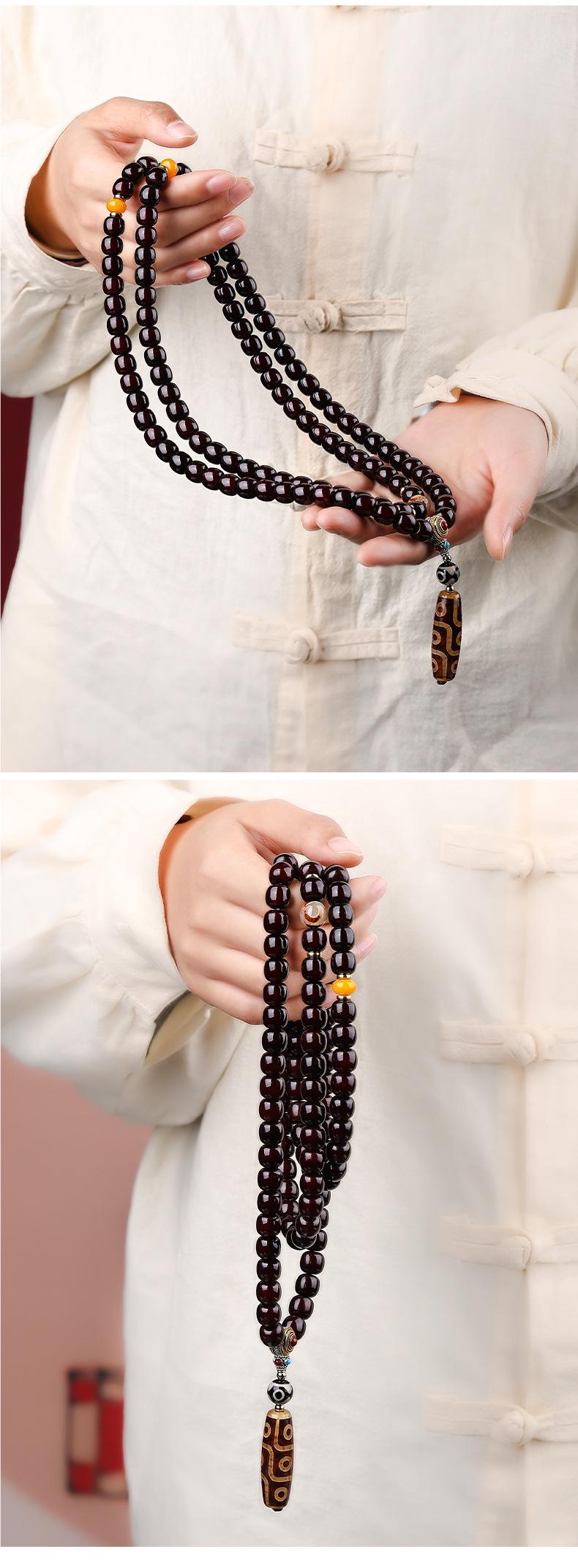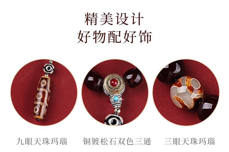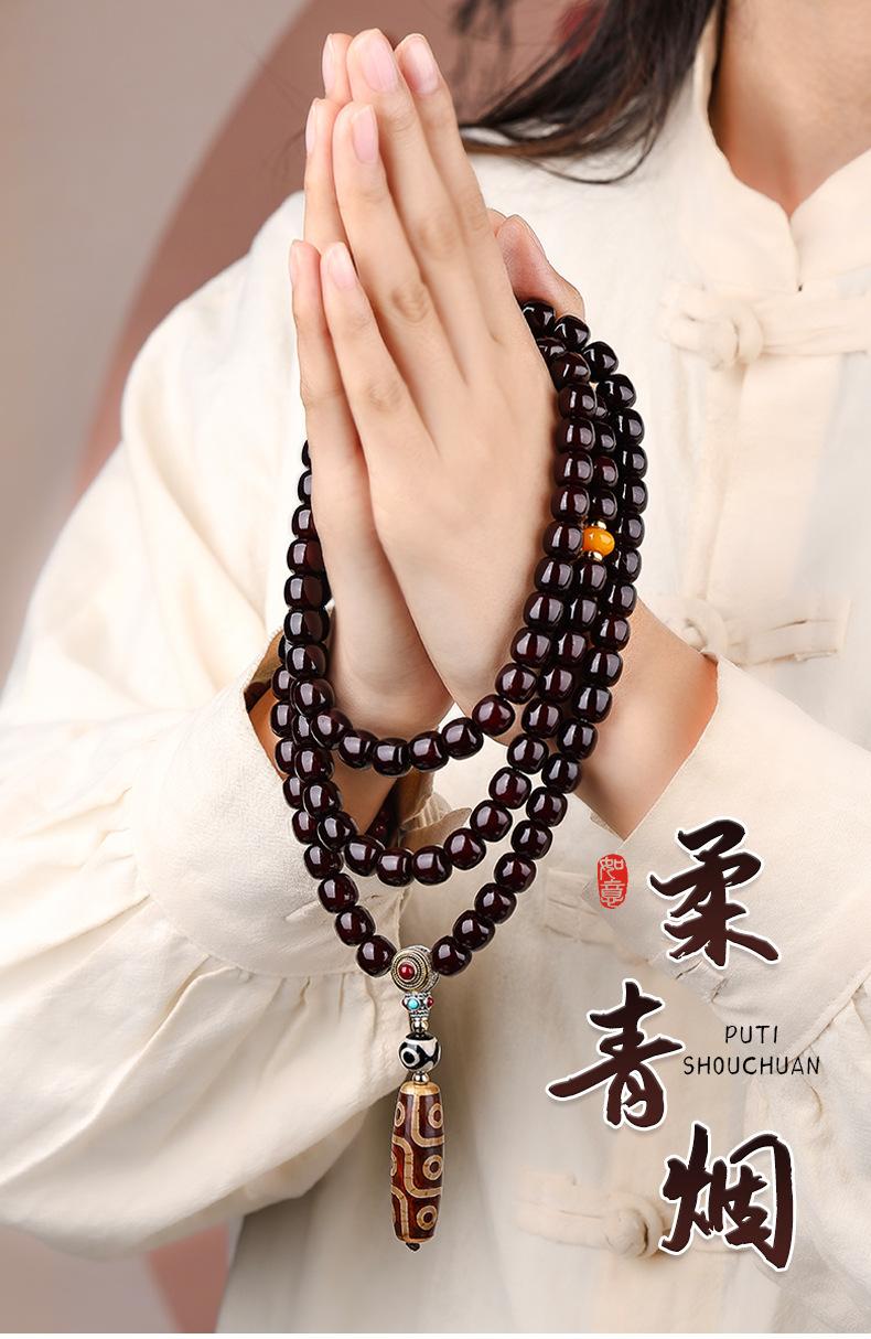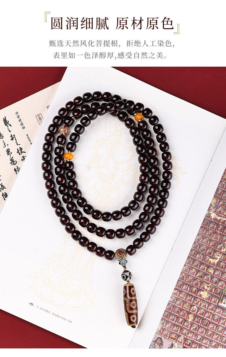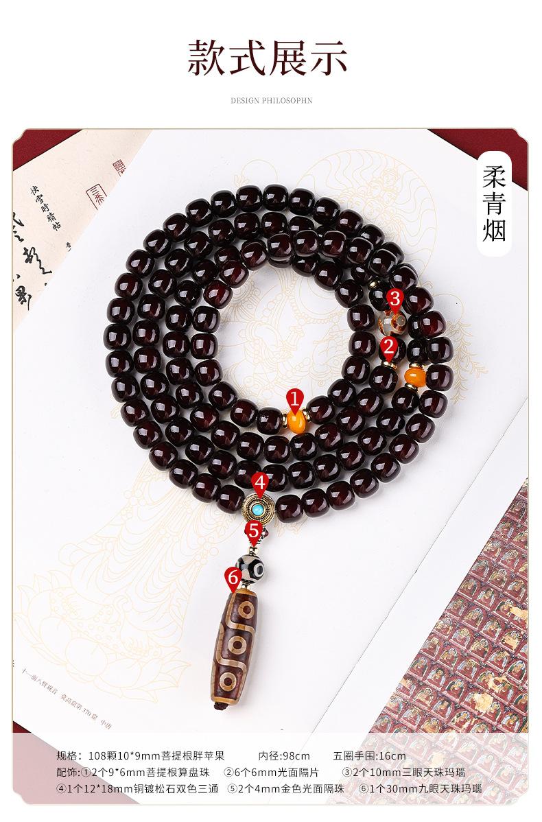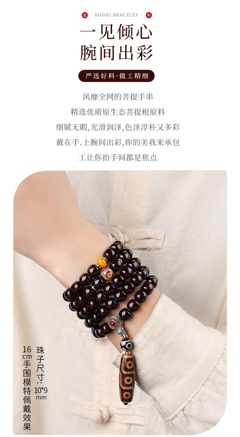 Pulsera bodhi de material antiguo con corazón codicioso de estilo nacional, cuentas de ágata de nueve ojos, multicírculo, cuentas para texto, pulsera de cuentas para jugar, suministro en vivo al por mayor