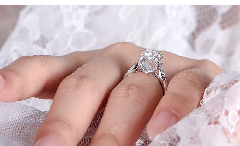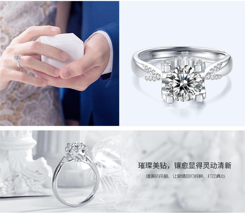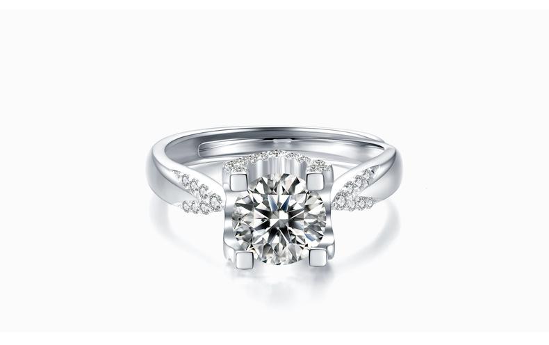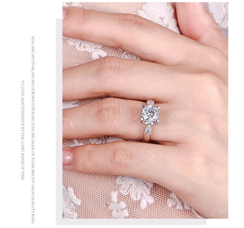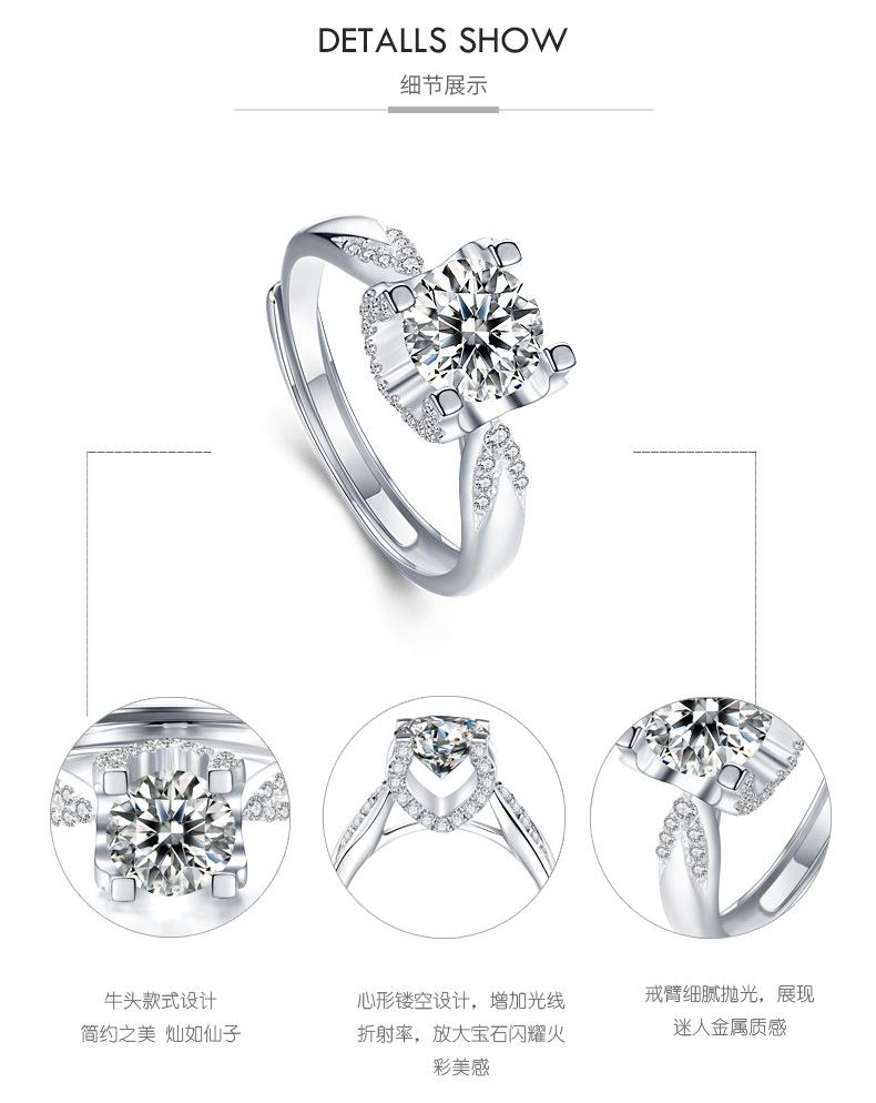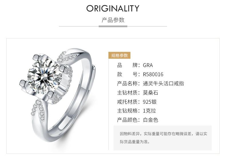 Anillo de moissanita GRA de plata S925 con cita de ángel para mujer, color D, abierto, con forma de cabeza de buey, cuatro garras, propuesta de 1 quilate