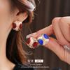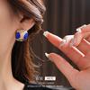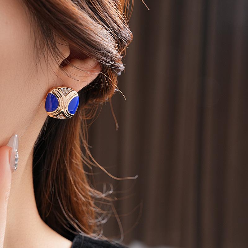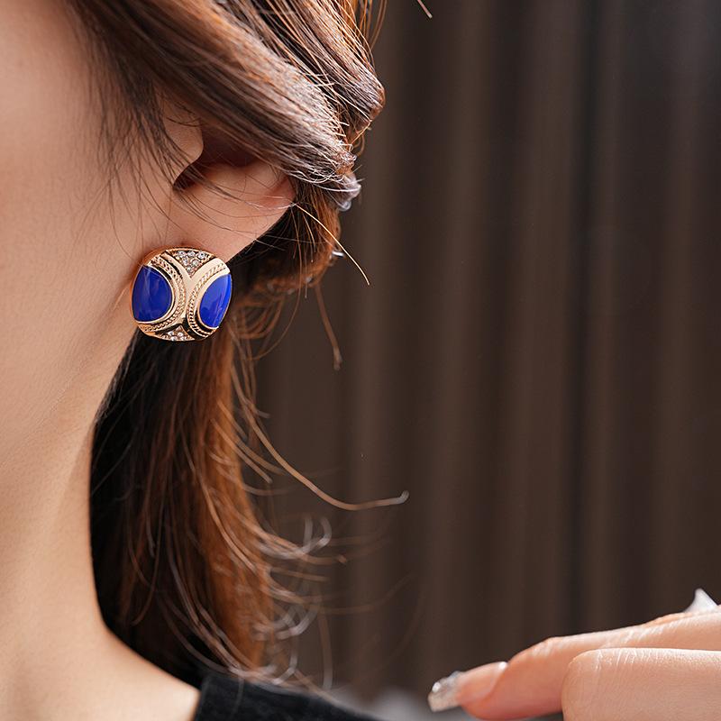 Aretes Cuadrados Medievales Vintage, Agujas de Plata, Aretes de Letras Estilo Palacio de Lujo Accesible, Aretes Versátiles Retro de Alta Gama