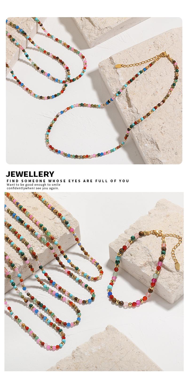 Collar de cuentas de acero de titanio de piedra natural colorida de estilo étnico bohemio, accesorios personalizados, pulsera de moda, juego de joyas