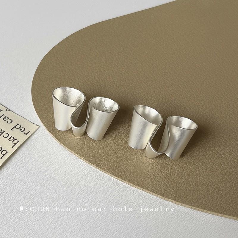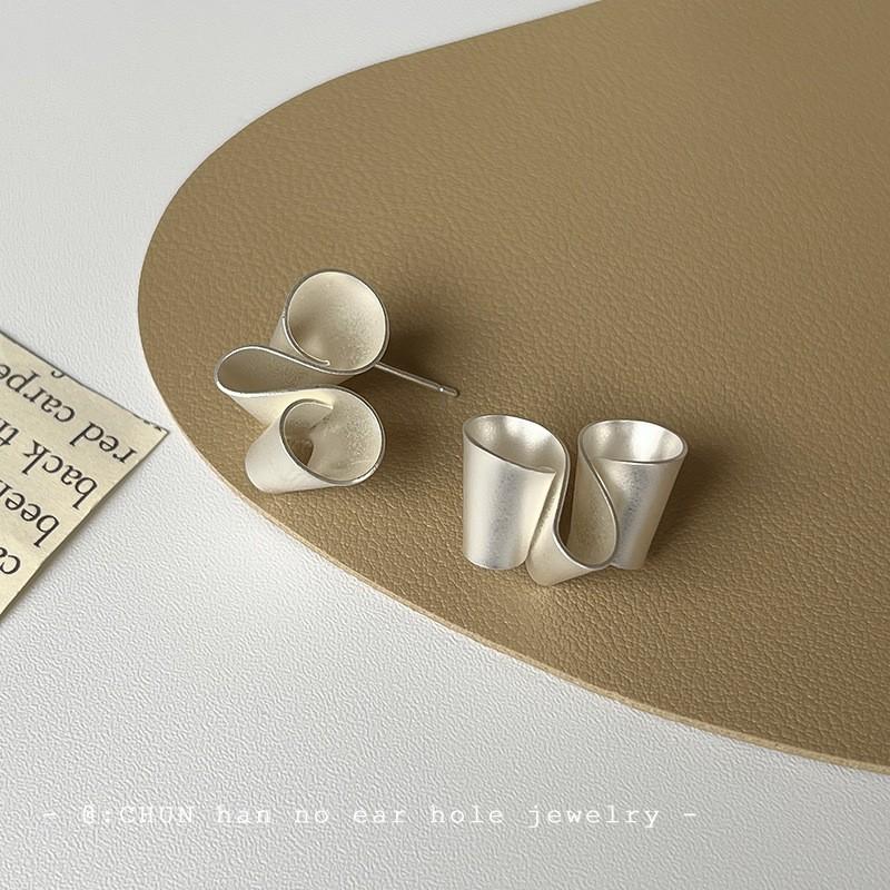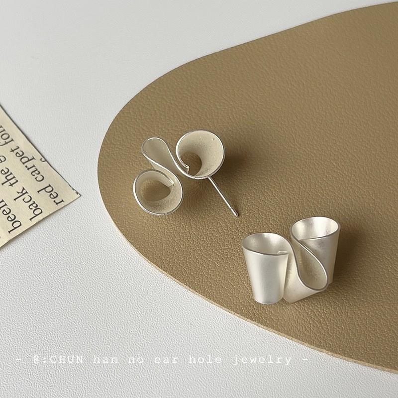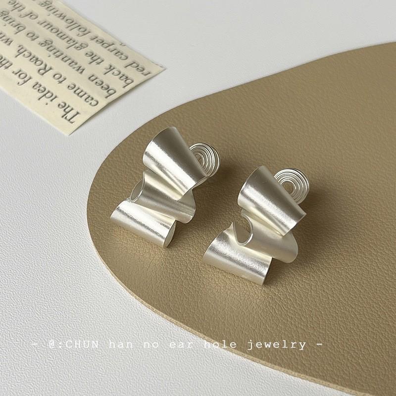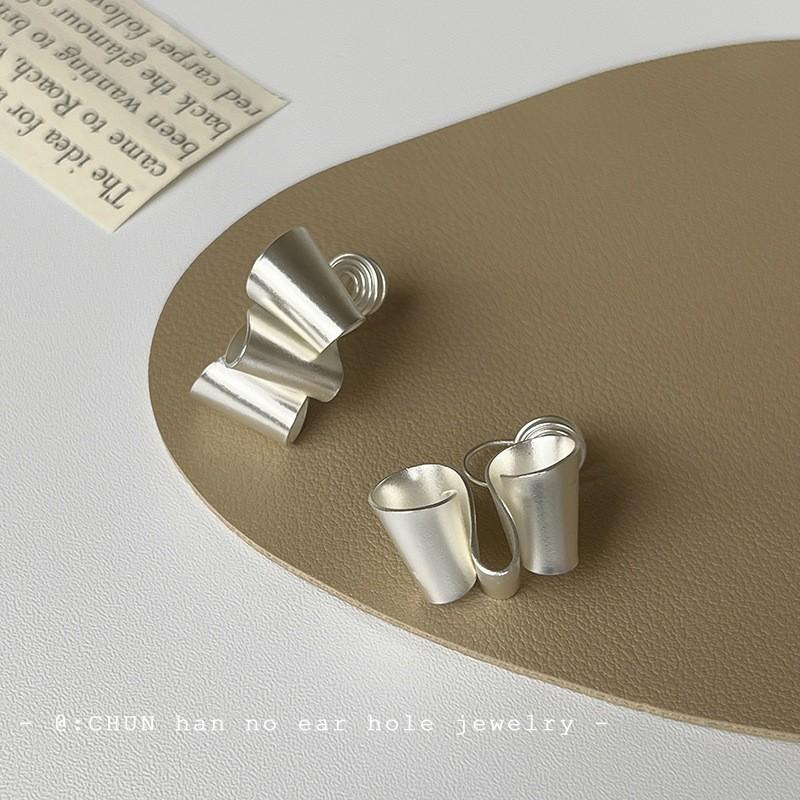 Aretes Irregulares Torcidos de Metal Mate Sin Perforación Diseño Nicho Retro Esmerilado Geométrico Clips de Silicona Indolor para las Orejas