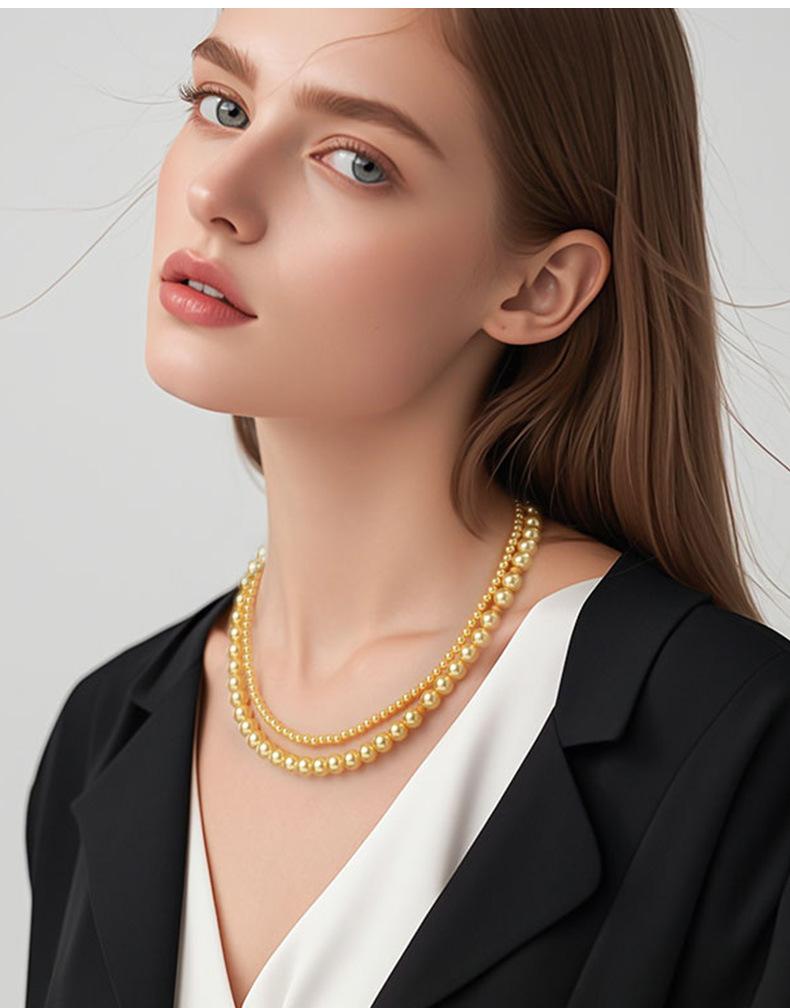 Compra Collar de Perlas Redondo para Mujer en Capas Lujo Ligero Nicho Popular Cadena para Suéter Versátil Temperamento Cadena para Clavícula en Stock al por mayor en Joom.pro