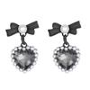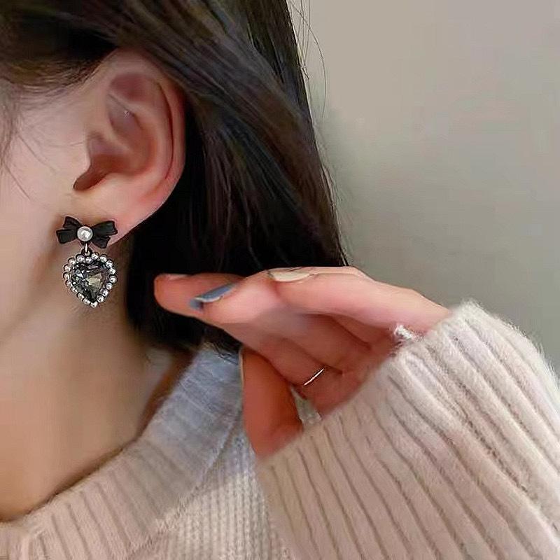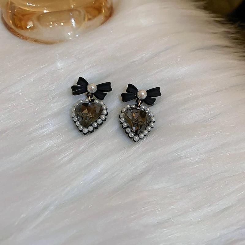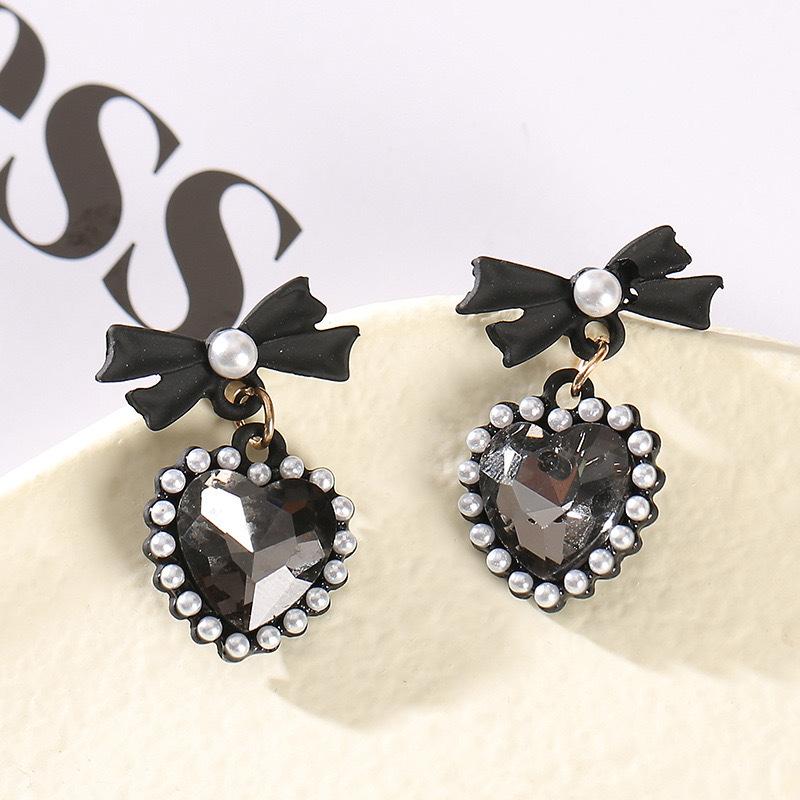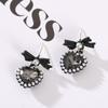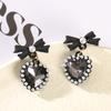 Pendientes de perla con lazo negro para mujer, elegantes, de alta gama, con estilo vintage francés.