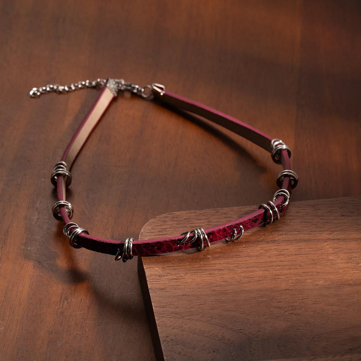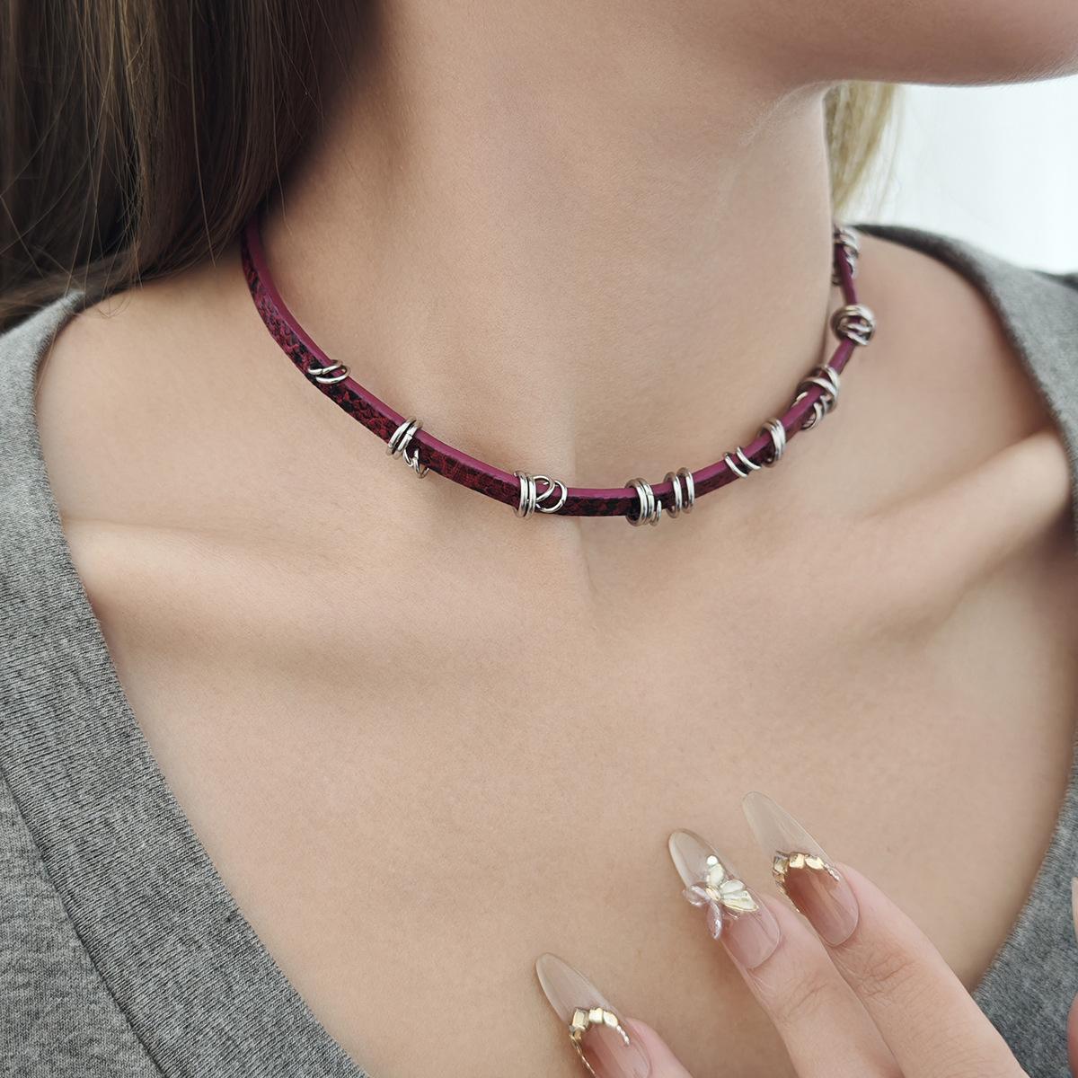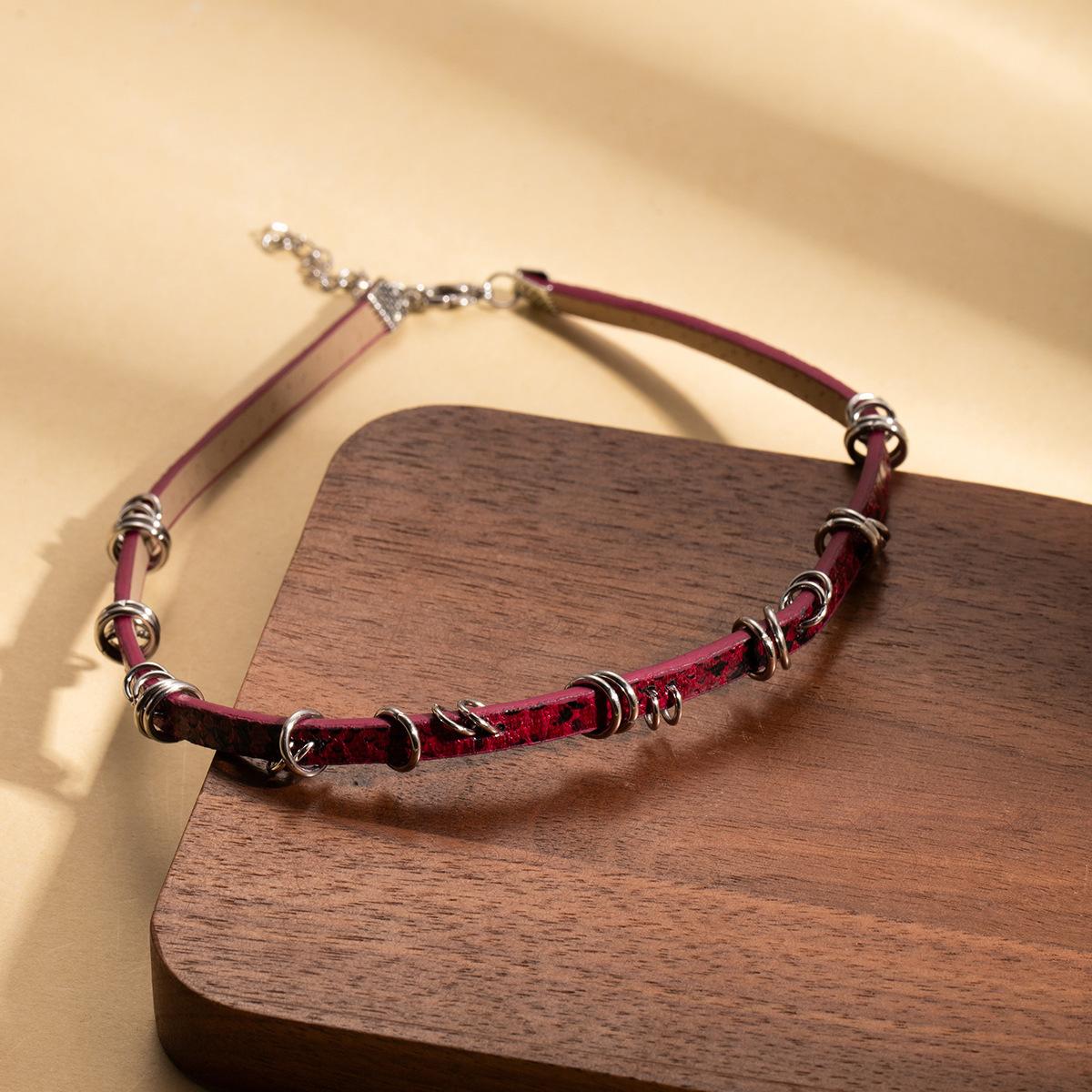 Collar gargantilla de cuero rojo leopardo para chica moderna, estilo punk, cadena para clavícula, collar de moda con personalidad, joyería, suministro al por mayor