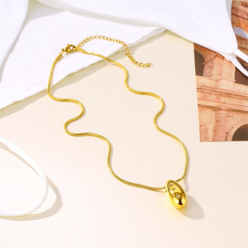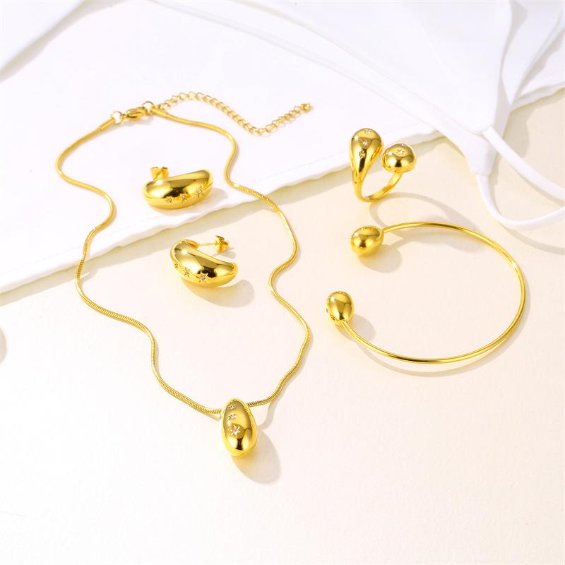 Moda Europea y Americana Elegante y de Alta Gama Colgante de Estrella Hexagonal Hueca de Oro de 18K Aretes Pulsera Collar de Acero Inoxidable