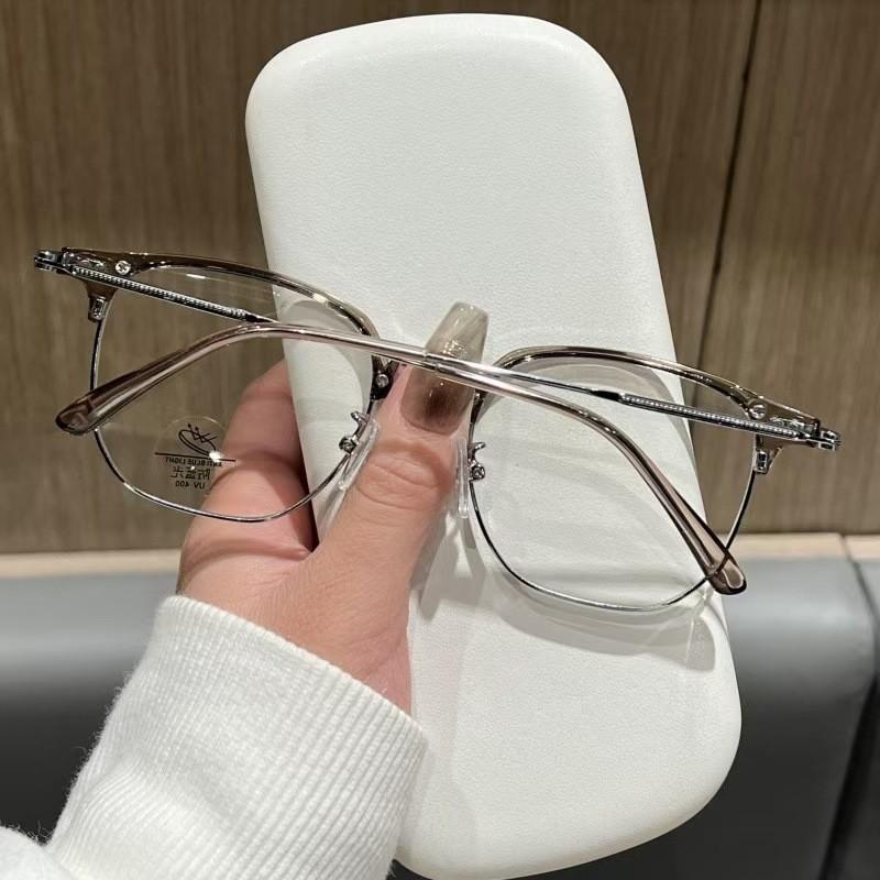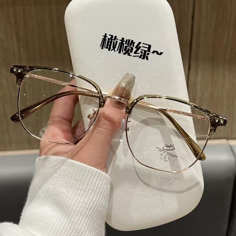 Nuevas gafas ultraligeras de media montura para mujeres. La miopía se puede equipar con una montura grande para que los hombres muestren el rostro. Montura para ojos pequeños para que la cara grande se vea delgada.
