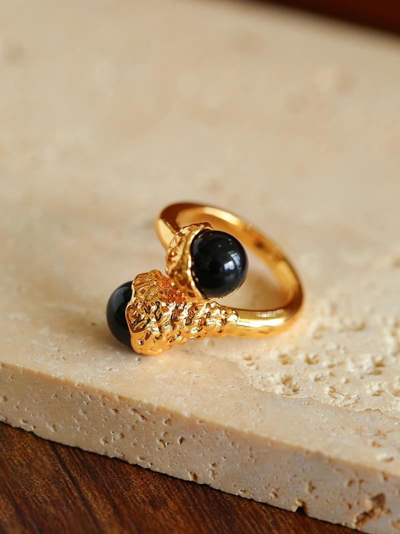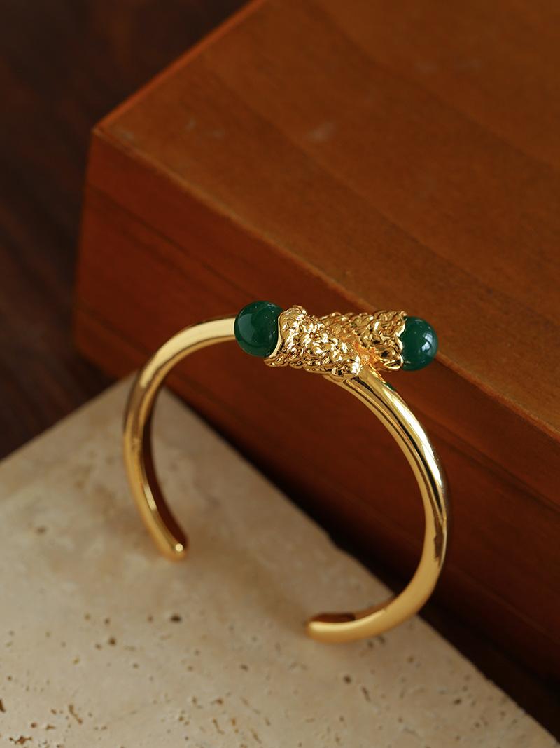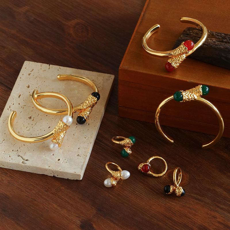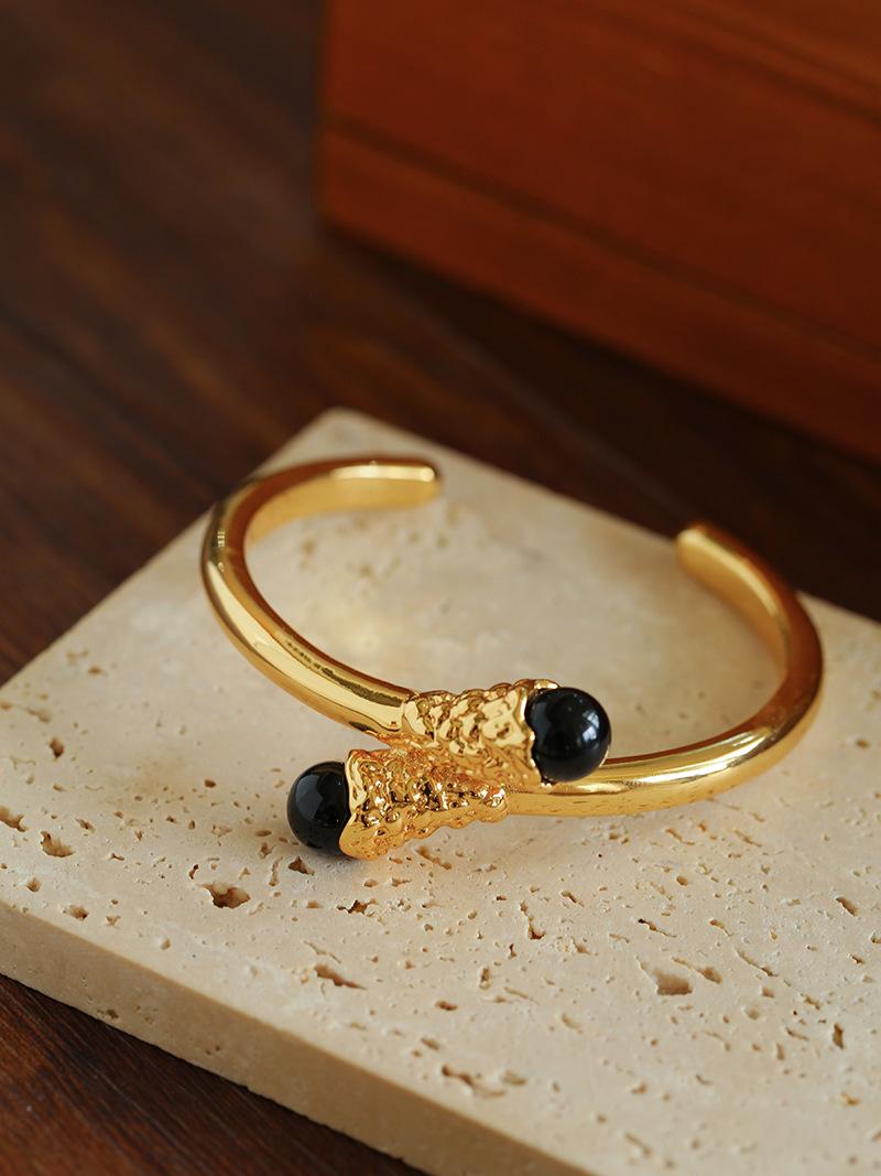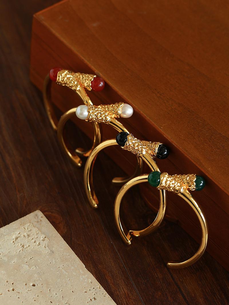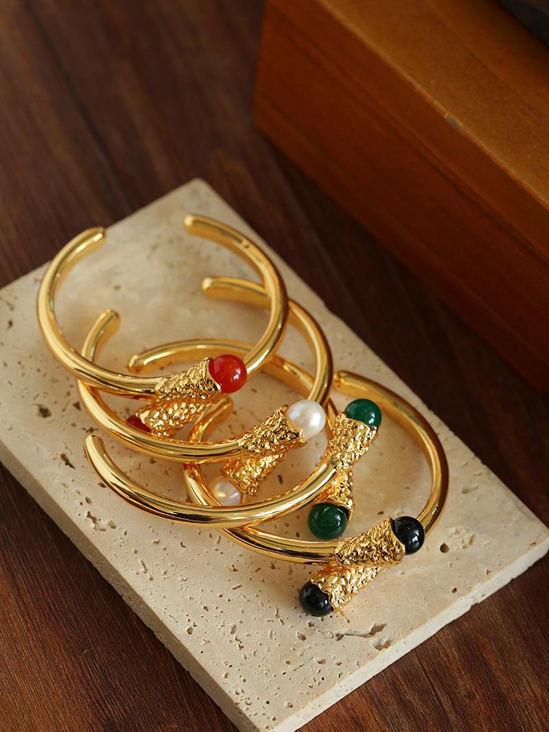 Pulsera de Nicho Metal Lava Gotas de Agua Ágata Anillo Abierto Textura para Mujer Pulsera de Moda Retro