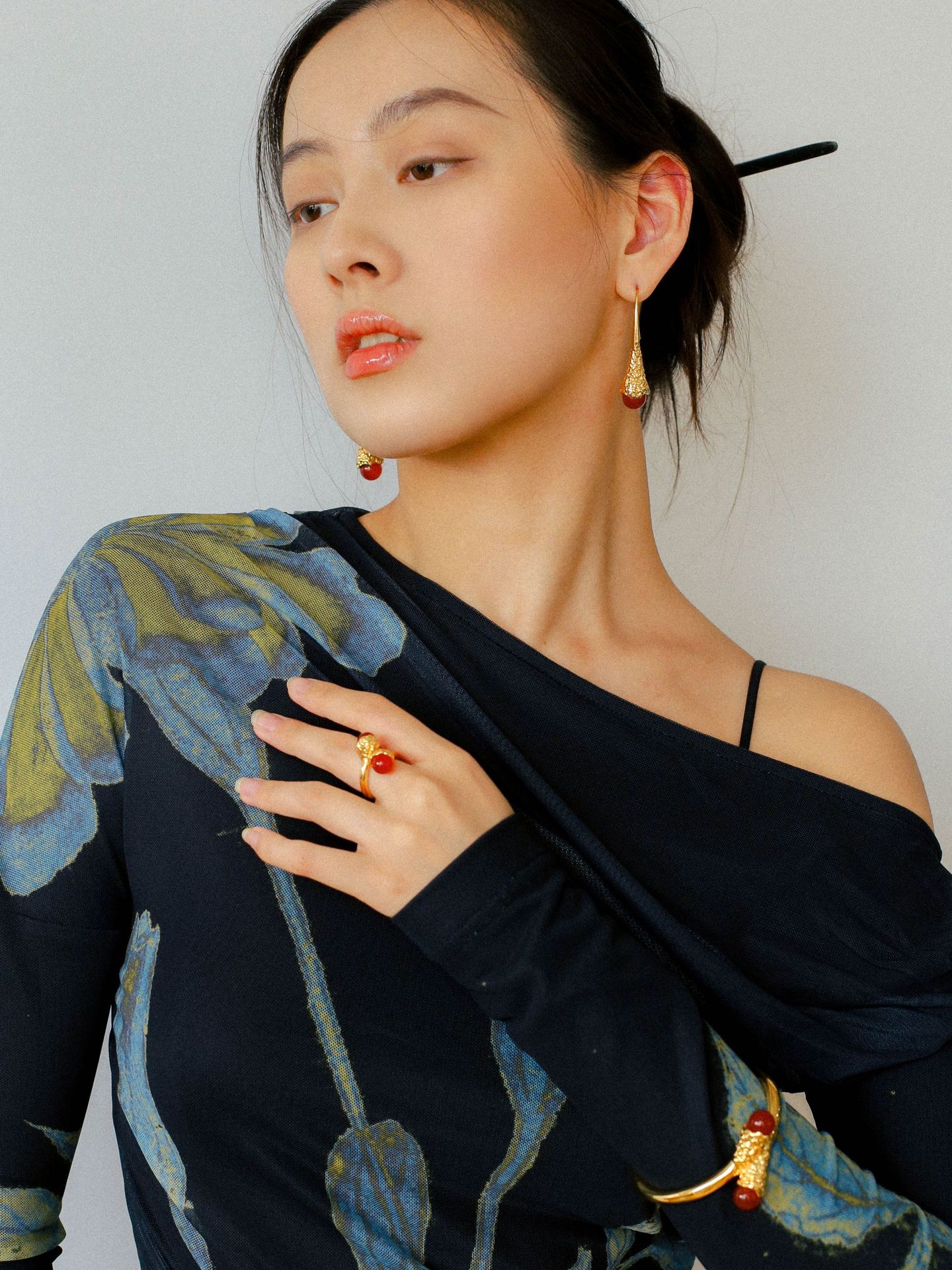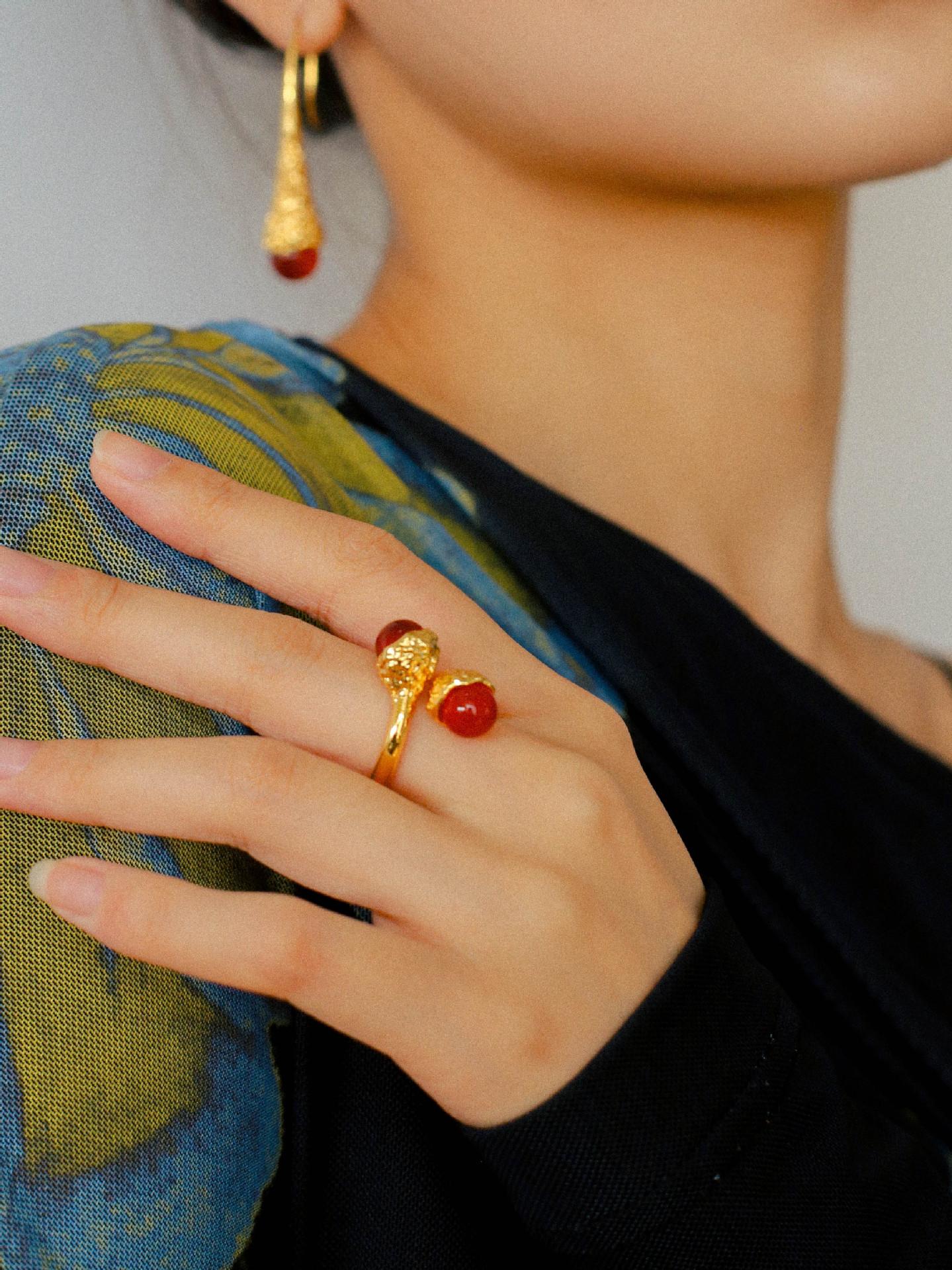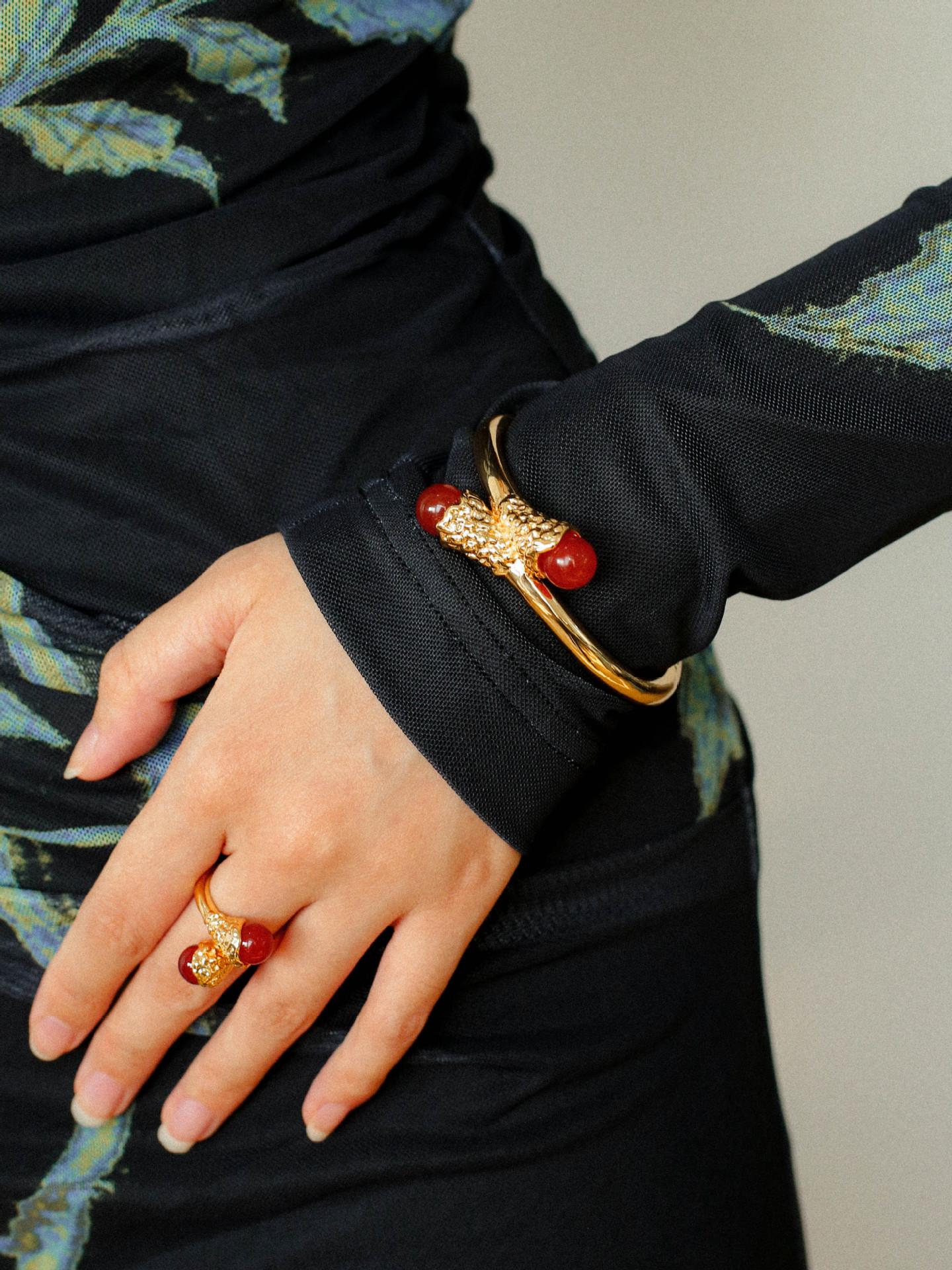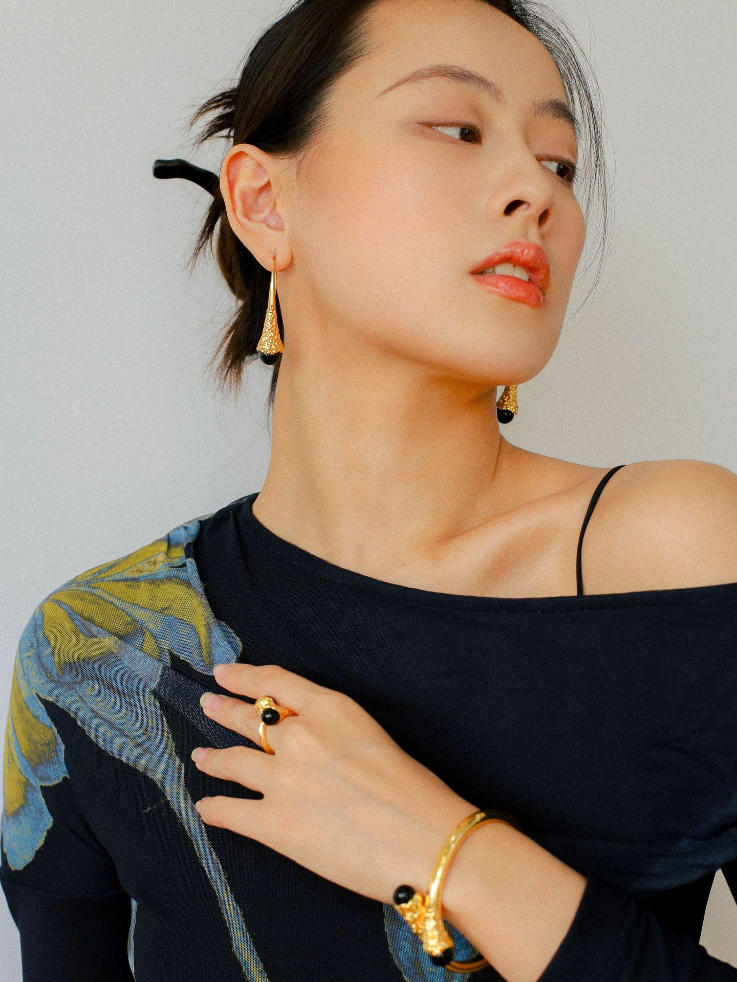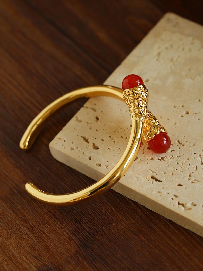 Pulsera de Nicho Metal Lava Gotas de Agua Ágata Anillo Abierto Textura para Mujer Pulsera de Moda Retro