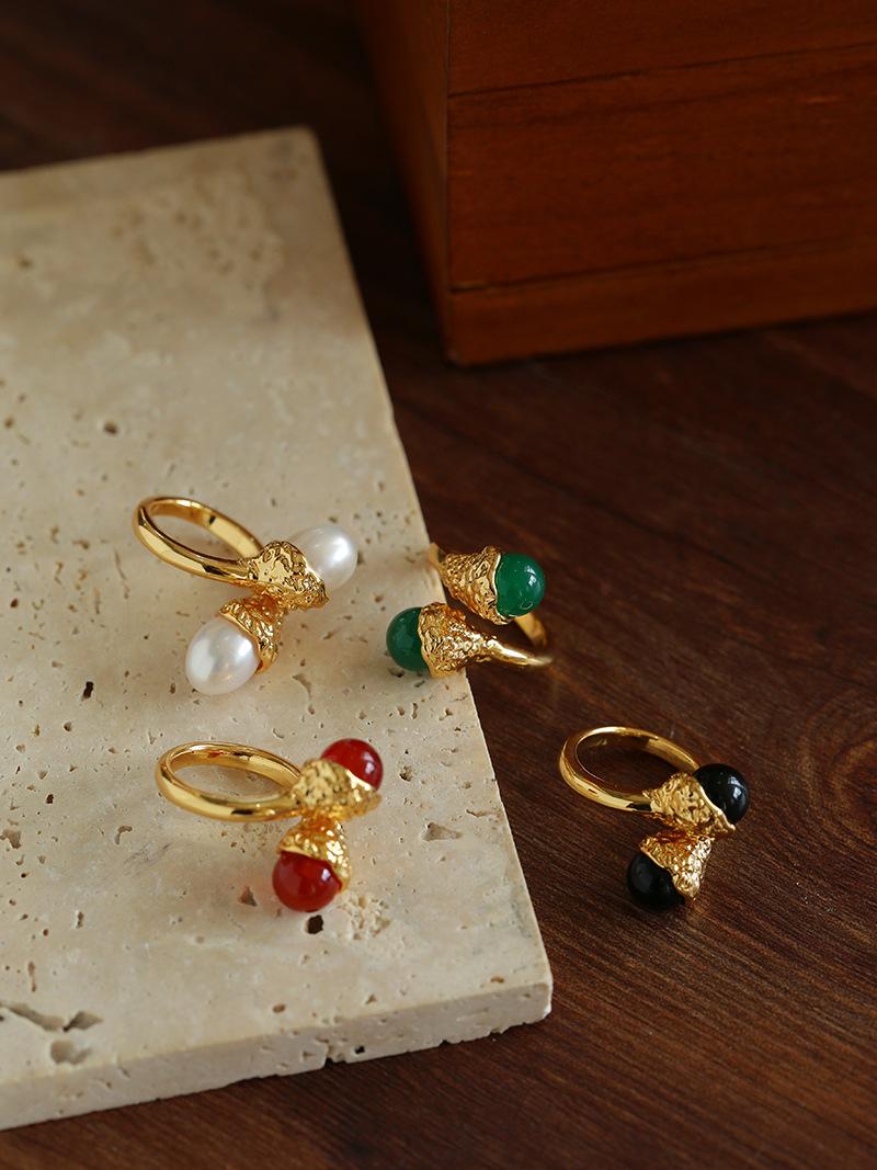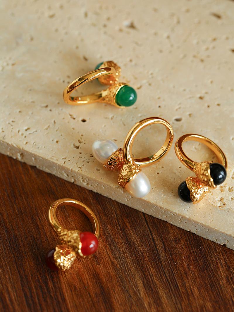 Pearl ring (size 6), Pearl ring (size 7), Pearl ring (size 8), Green agate ring (size 6), Green agate ring (si...