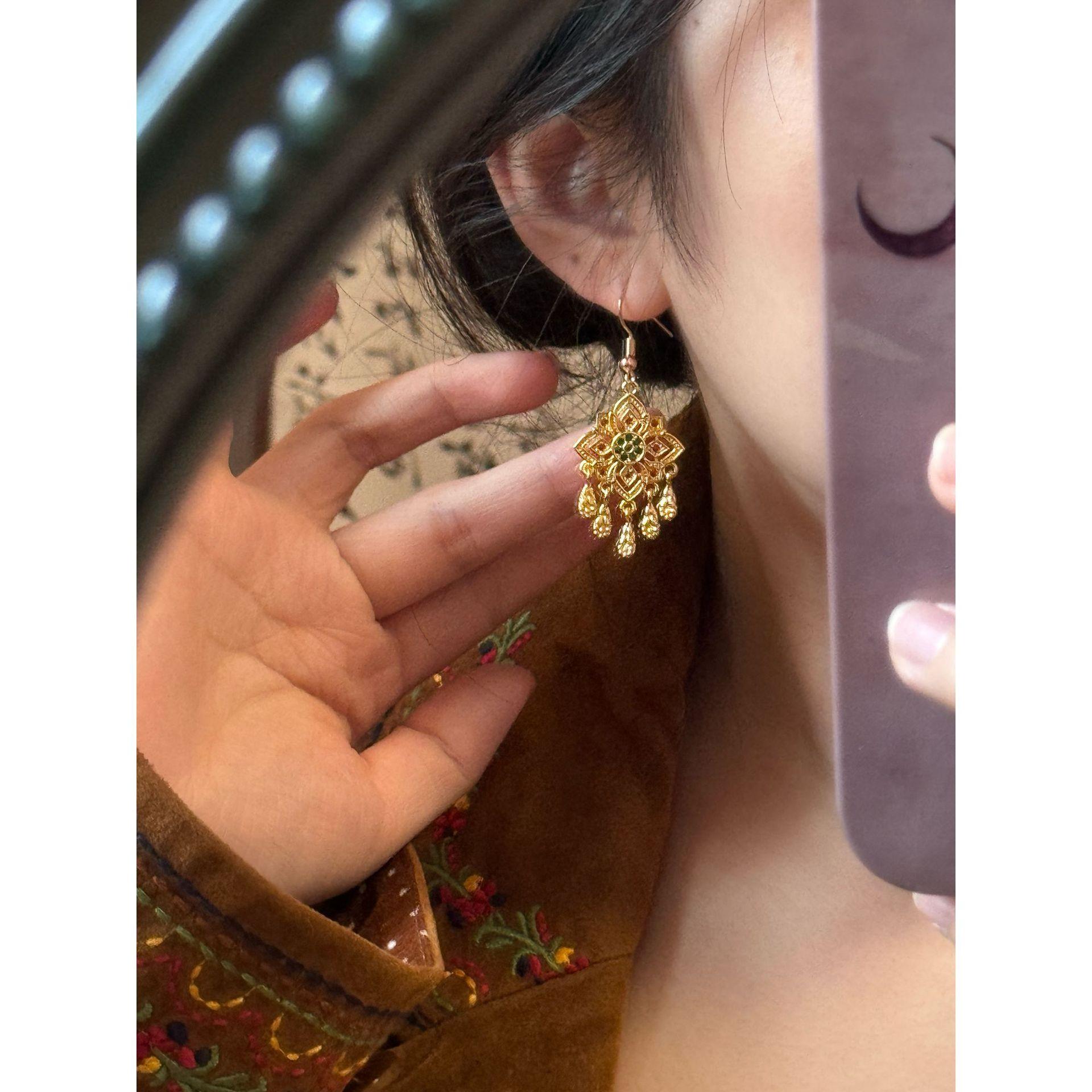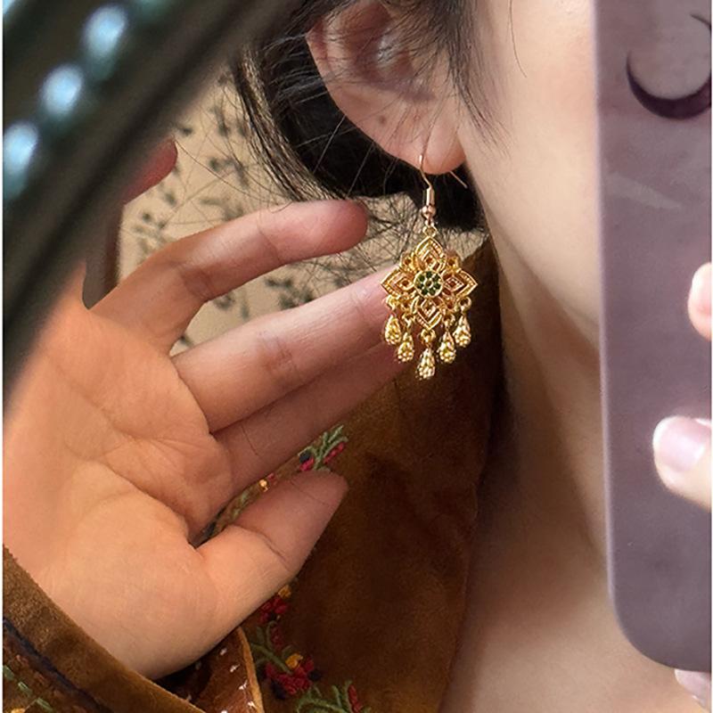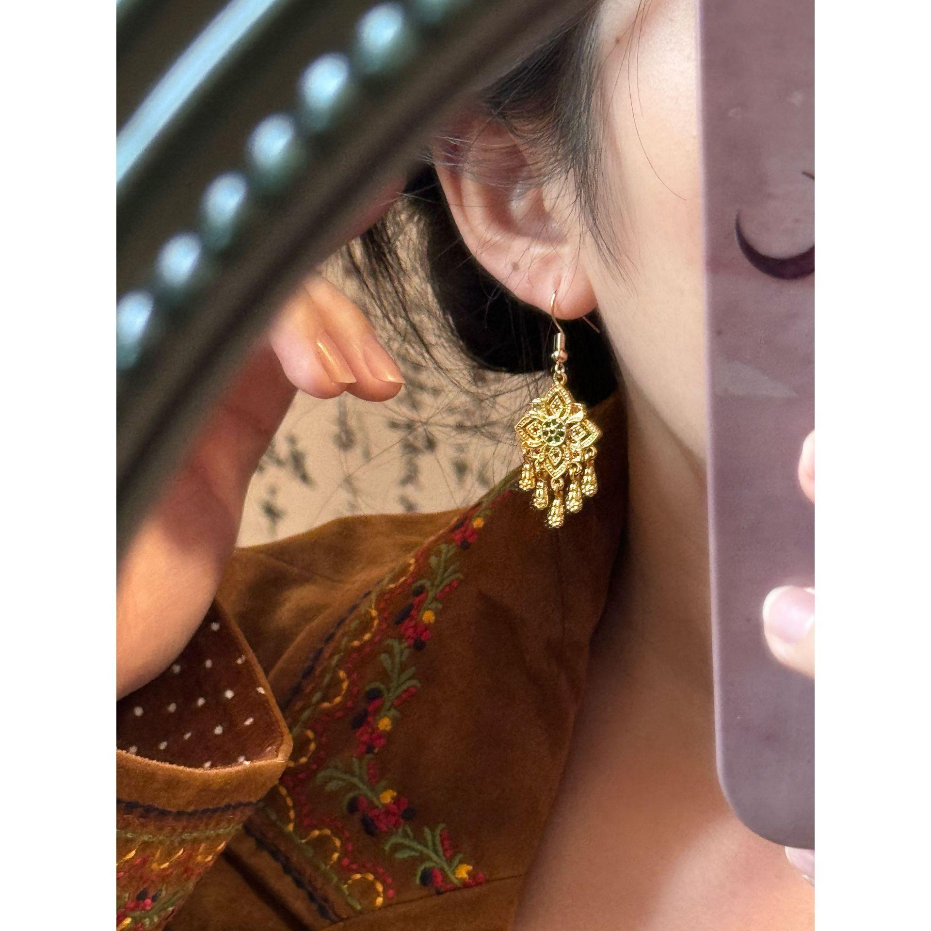 Pendientes de borla con flor hueca de diamante y gancho para la oreja, estilo francés retro, ligeros, de lujo, combinables y distintivos para mujer.
