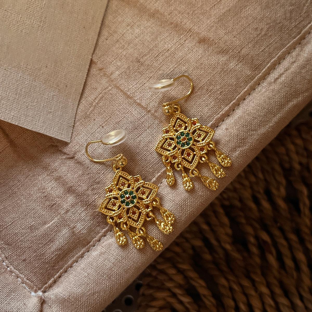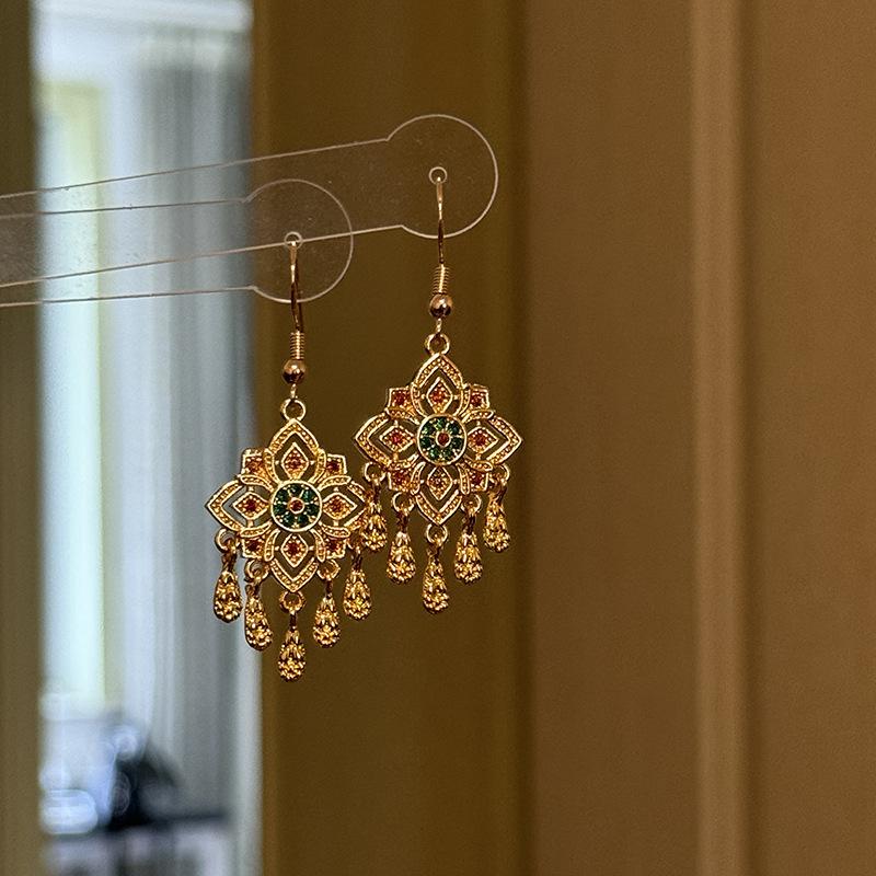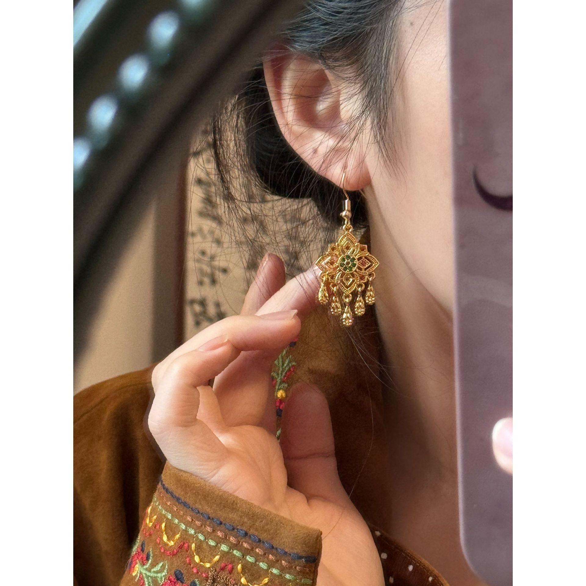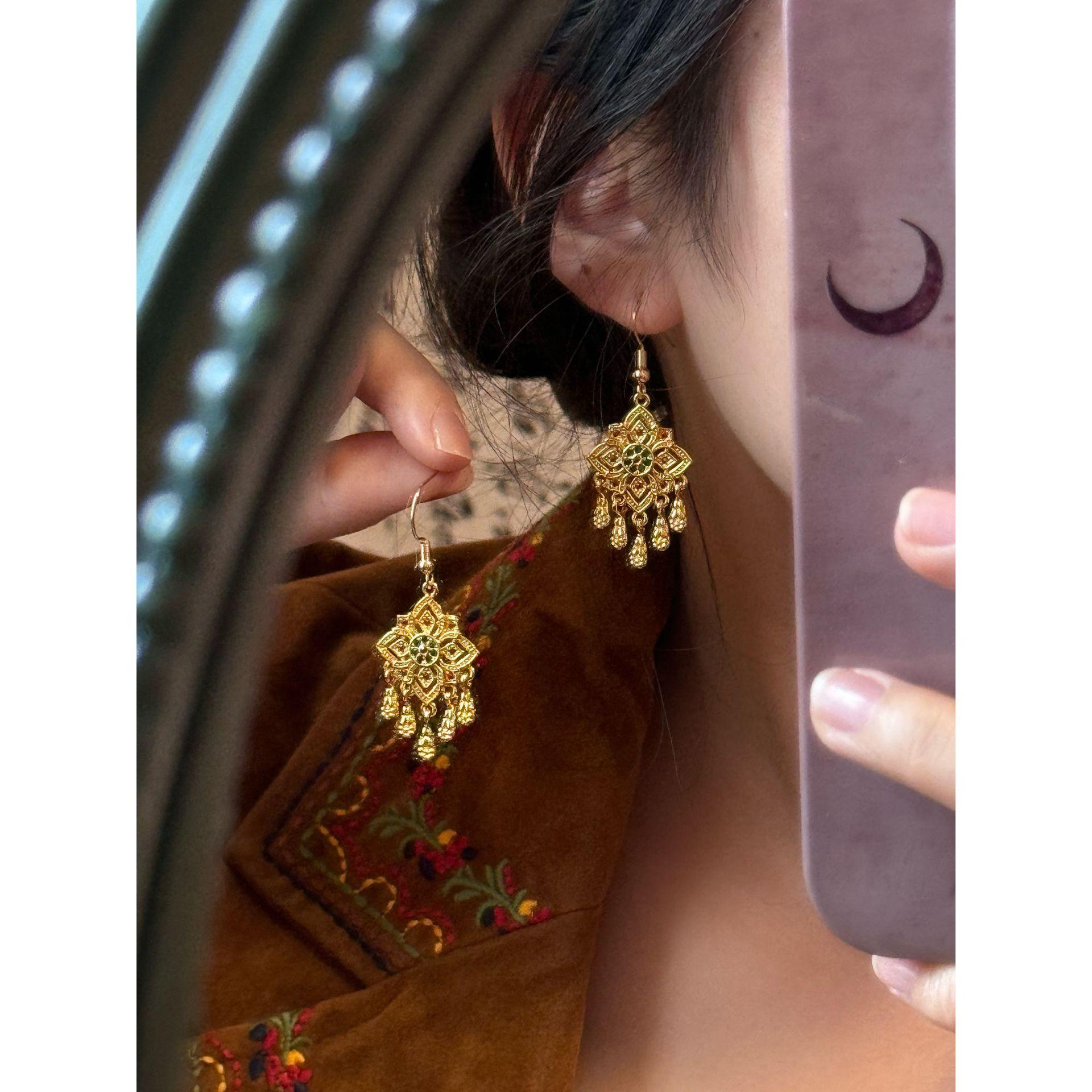 Pendientes de borla con flor hueca de diamante y gancho para la oreja, estilo francés retro, ligeros, de lujo, combinables y distintivos para mujer.