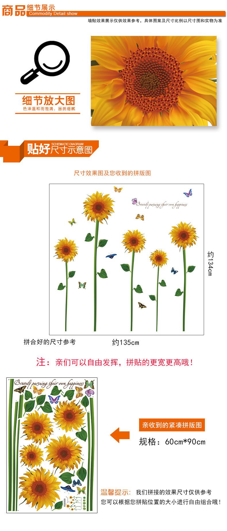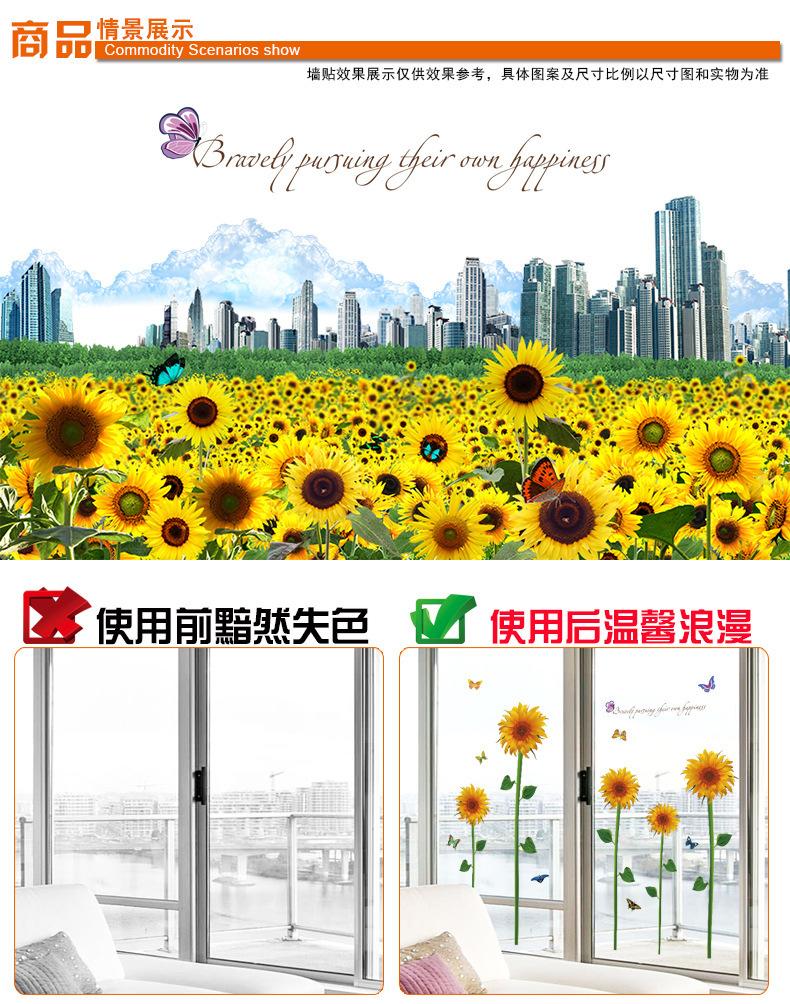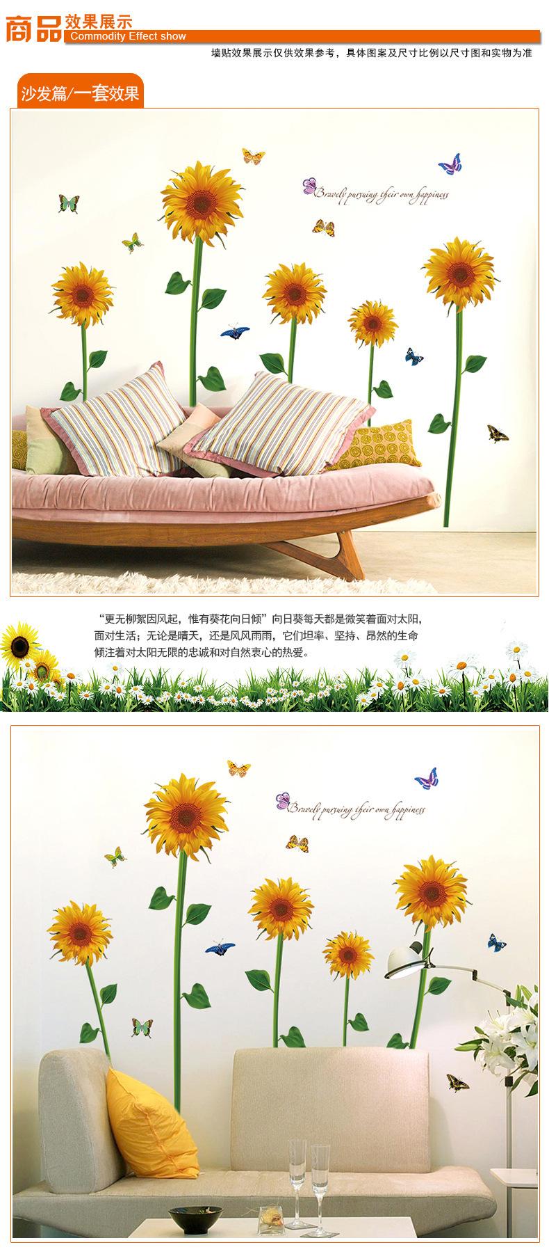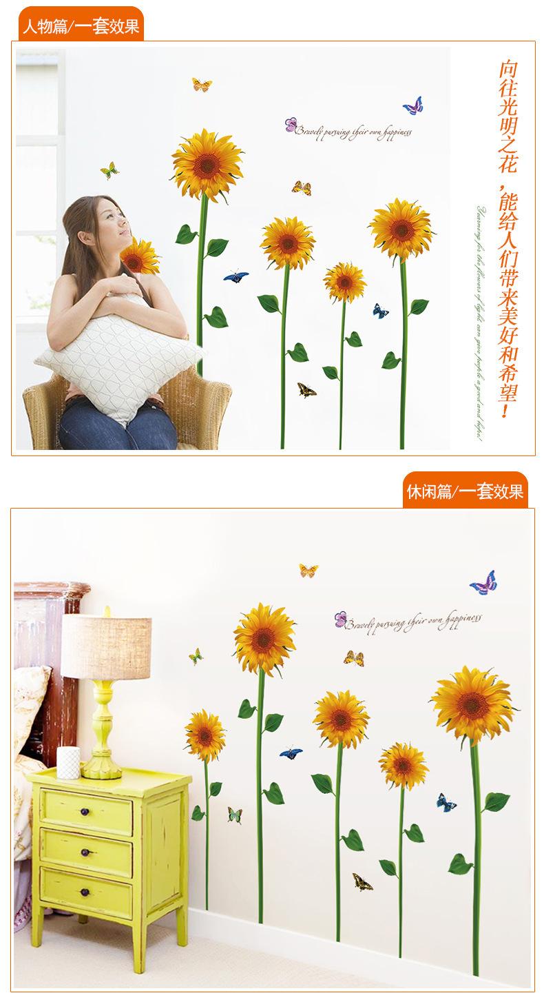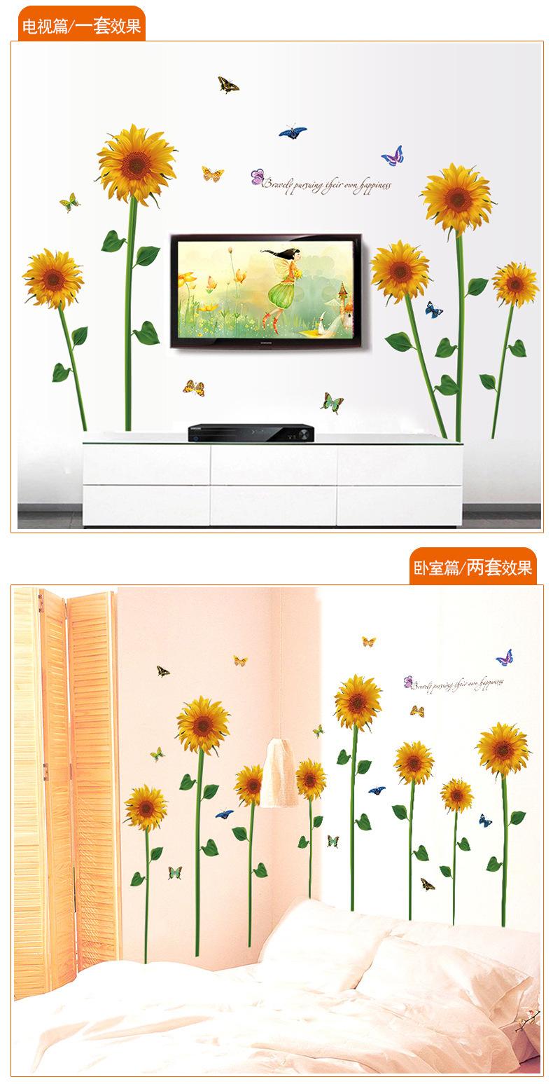Adhesivos de Pared Creativos de Flores de Girasol Sala de Estar Entrada Fondo de Pared para TV Decoración de Puerta de Cristal Adhesivos Autoadhesivos