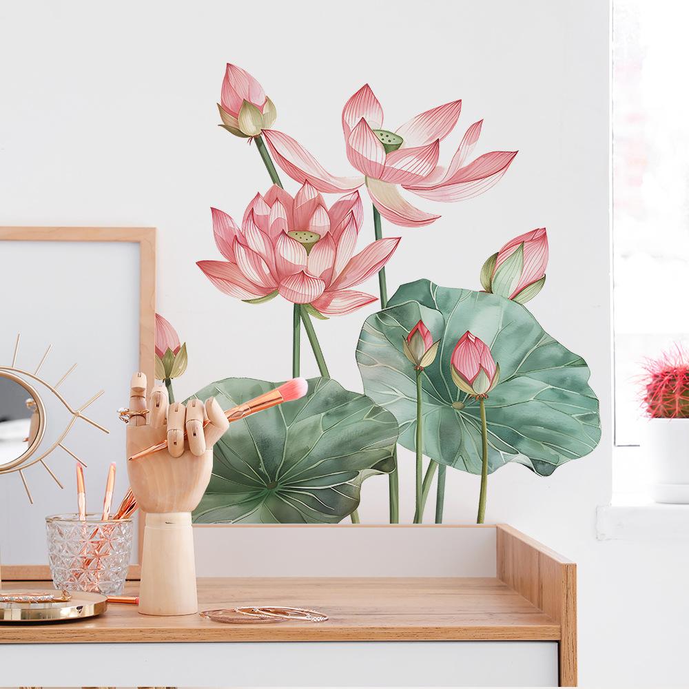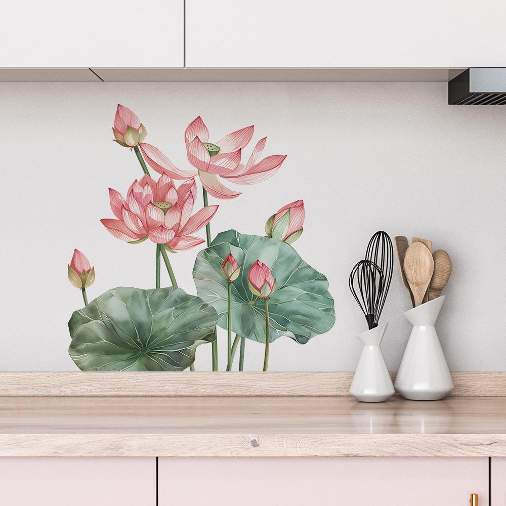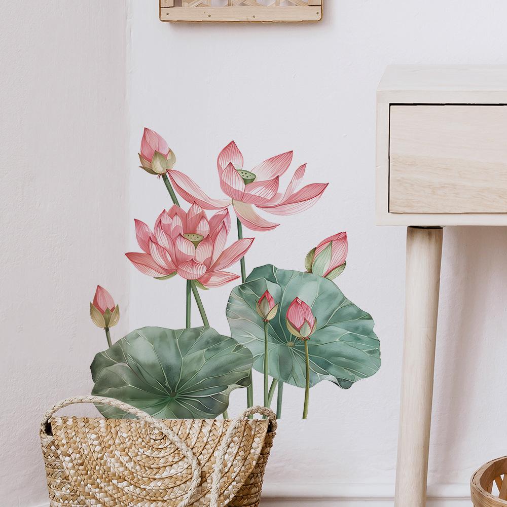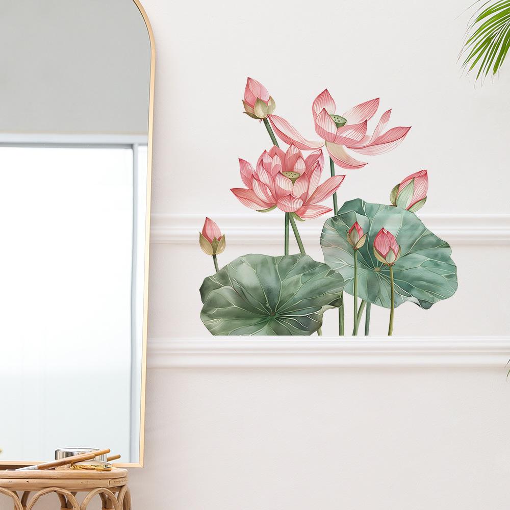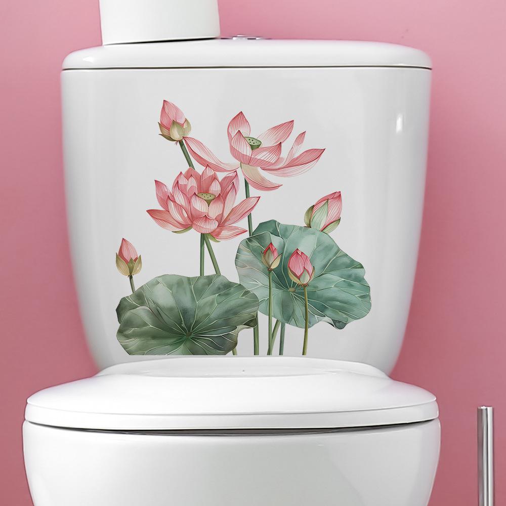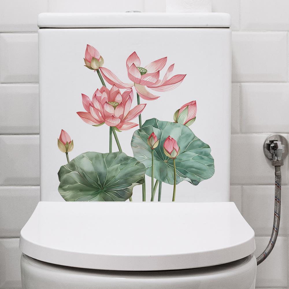 Calcomanías de Loto de Tinta Lisas y Elegantes Calcomanías para Inodoro Decoraciones para Inodoro de Baño Calcomanías de Pared Autoadhesivas Impermeables YH33003