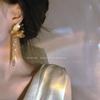 Pendientes de lujo con lazo dorado, ligeros y con borlas y cadena de diamantes de imitación, con diseño creativo y moderno que combina con todo.