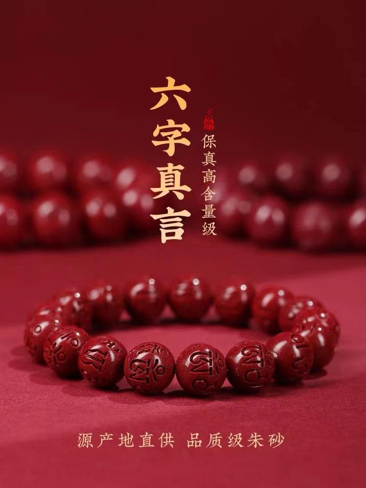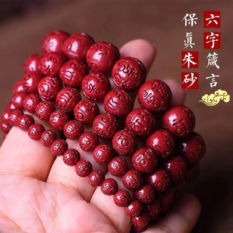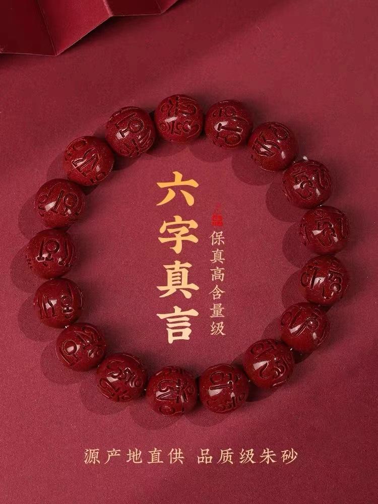 Venta al por mayor de pulseras de cinabrio con mantra de seis sílabas y una sola vuelta, cuentas de mantra de arena púrpura dorada de alto contenido, cuentas de oración budistas