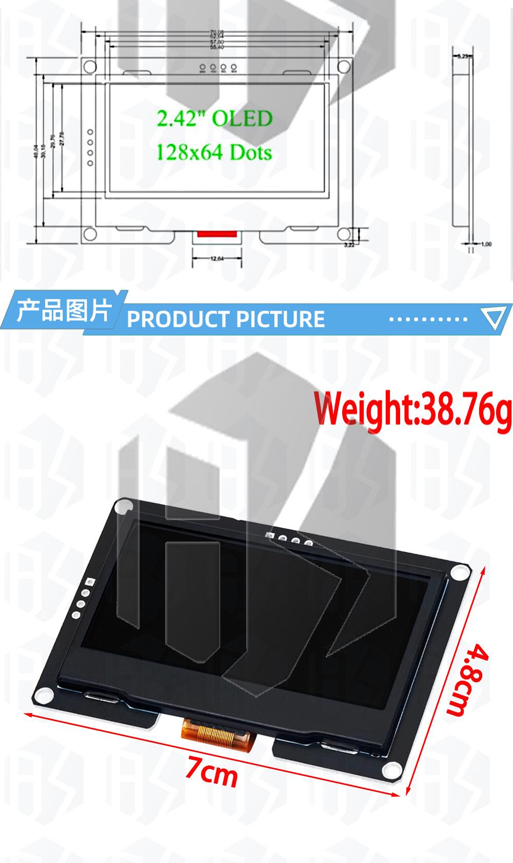 Módulo de pantalla OLED de 2,42 pulgadas 2,4 Pantalla 128x64 Controlador SSD1309 Interfaz IIC de 4 pines