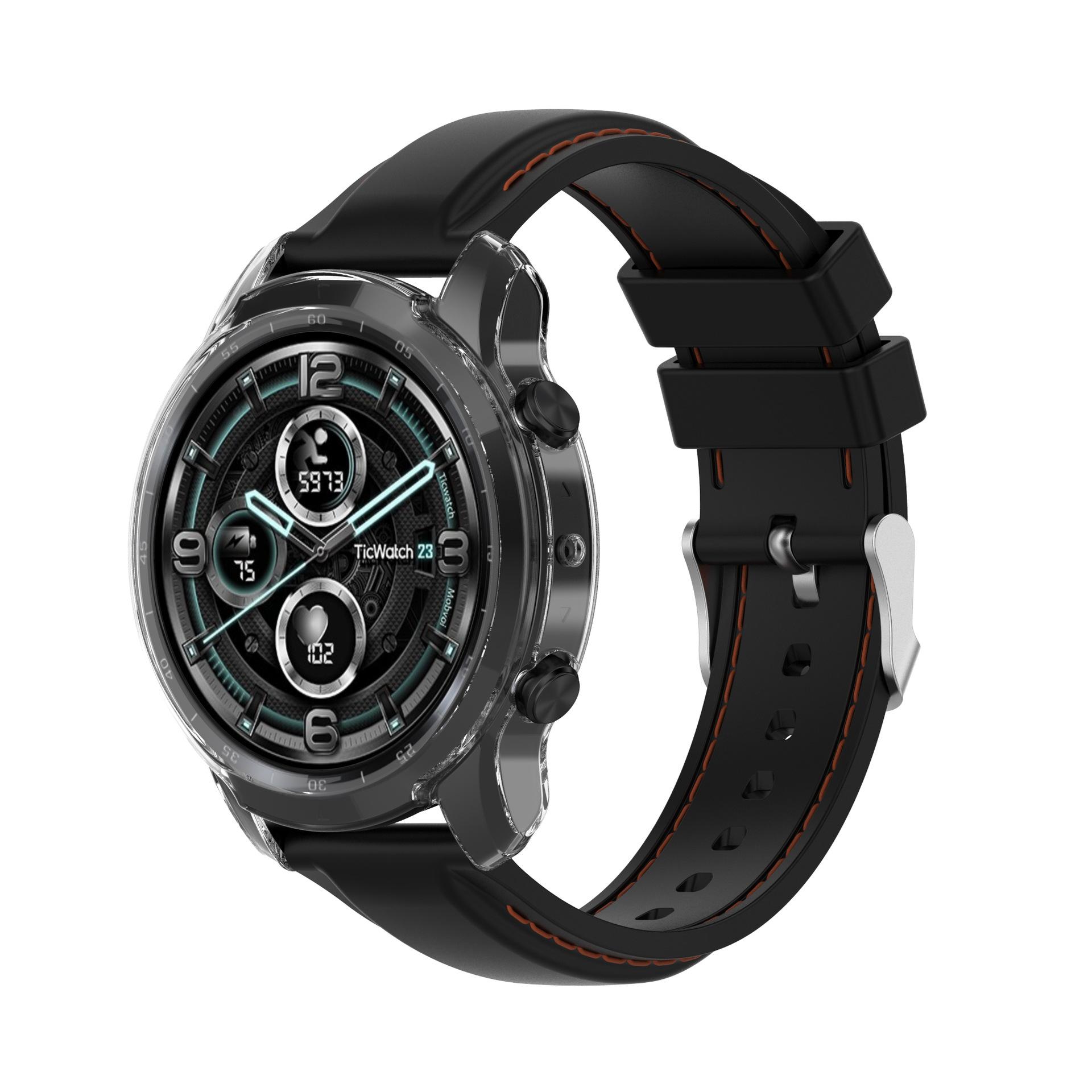 Nombre: Adecuado para funda protectora de reloj inteligente ticwatch pro3, funda de goma suave de TPU, anticaída, funda de goma hueca semicubierta