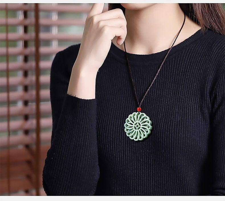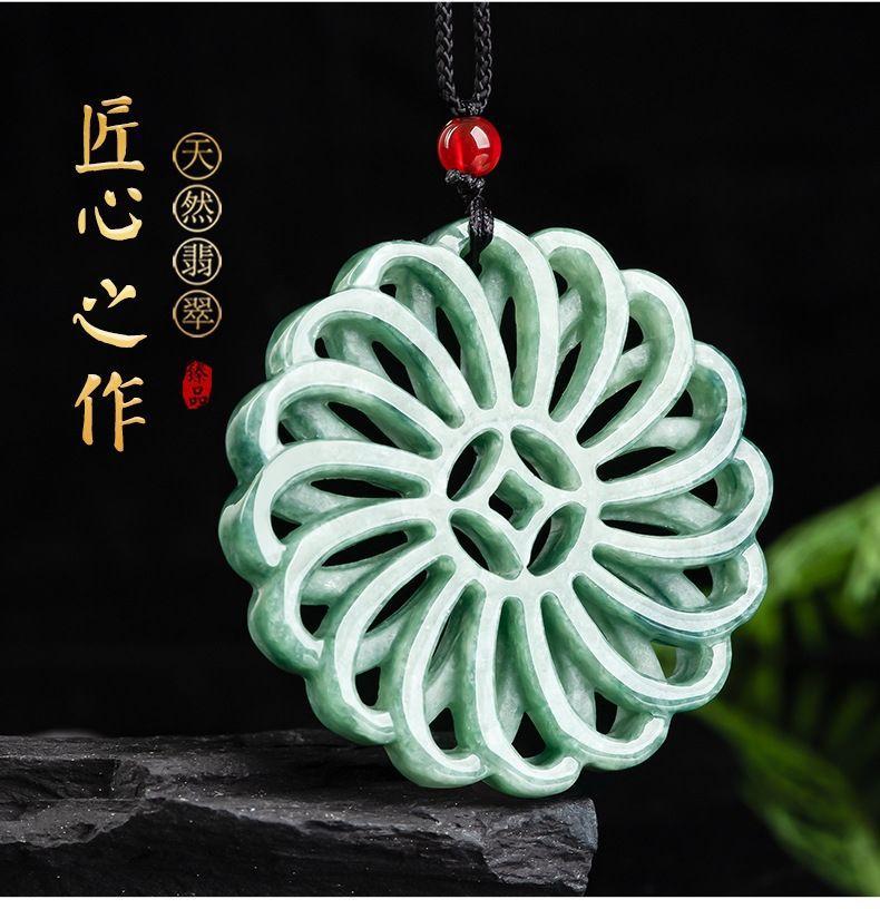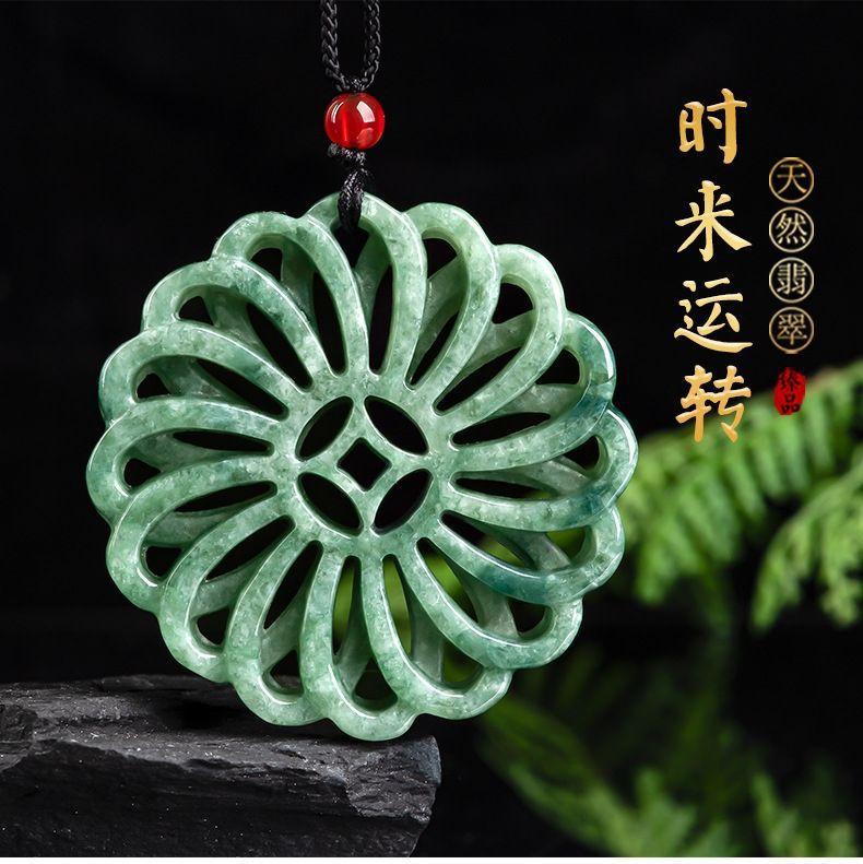 Colgante de jadeíta natural con forma de carga, colgante de jade de hielo, cadena de suéter con rueda de transferencia, collar para hombres y mujeres