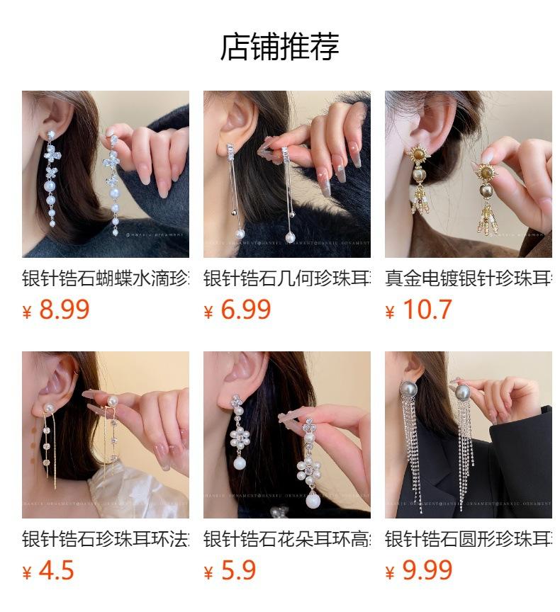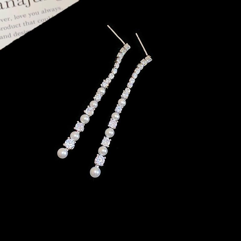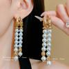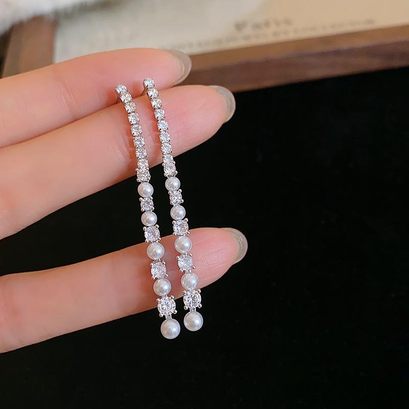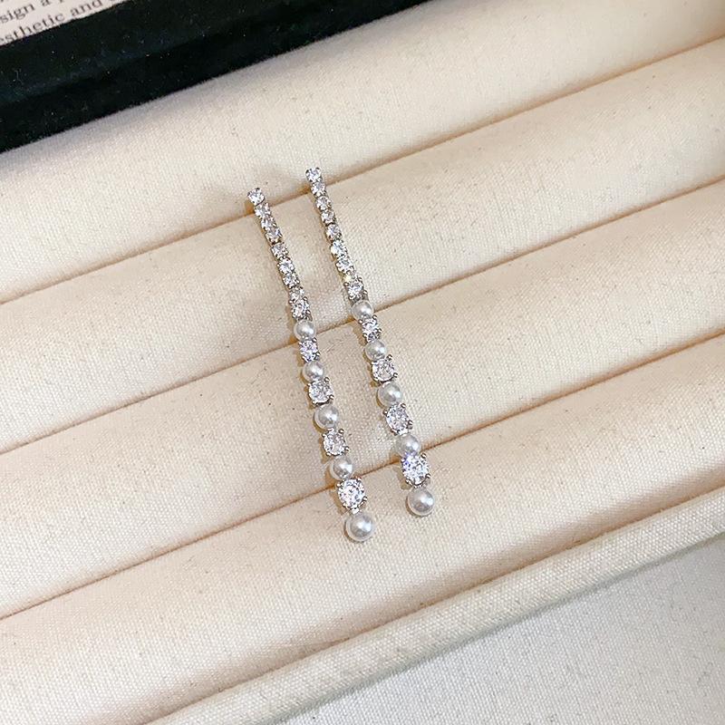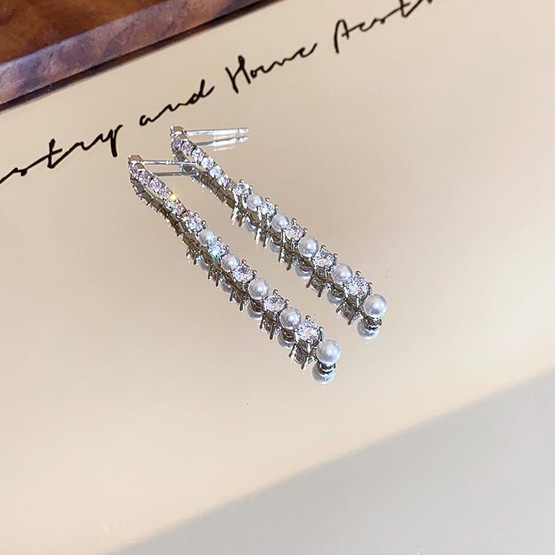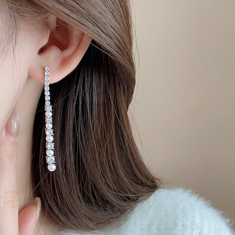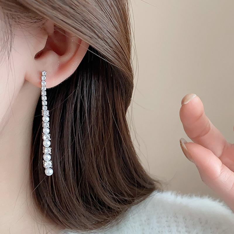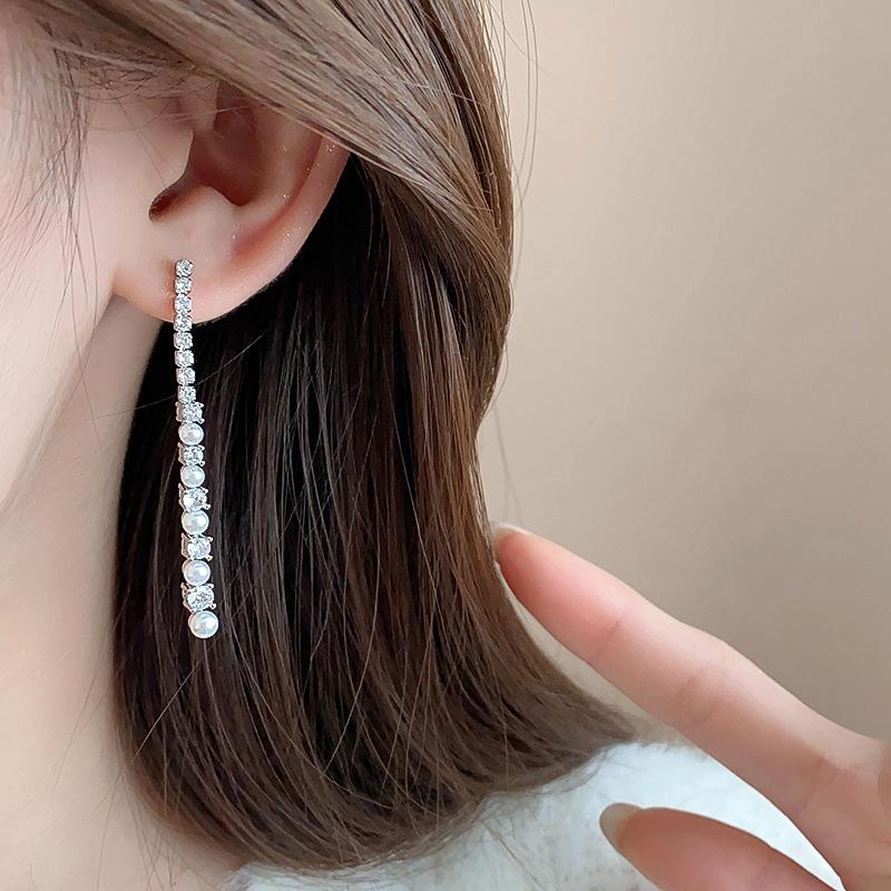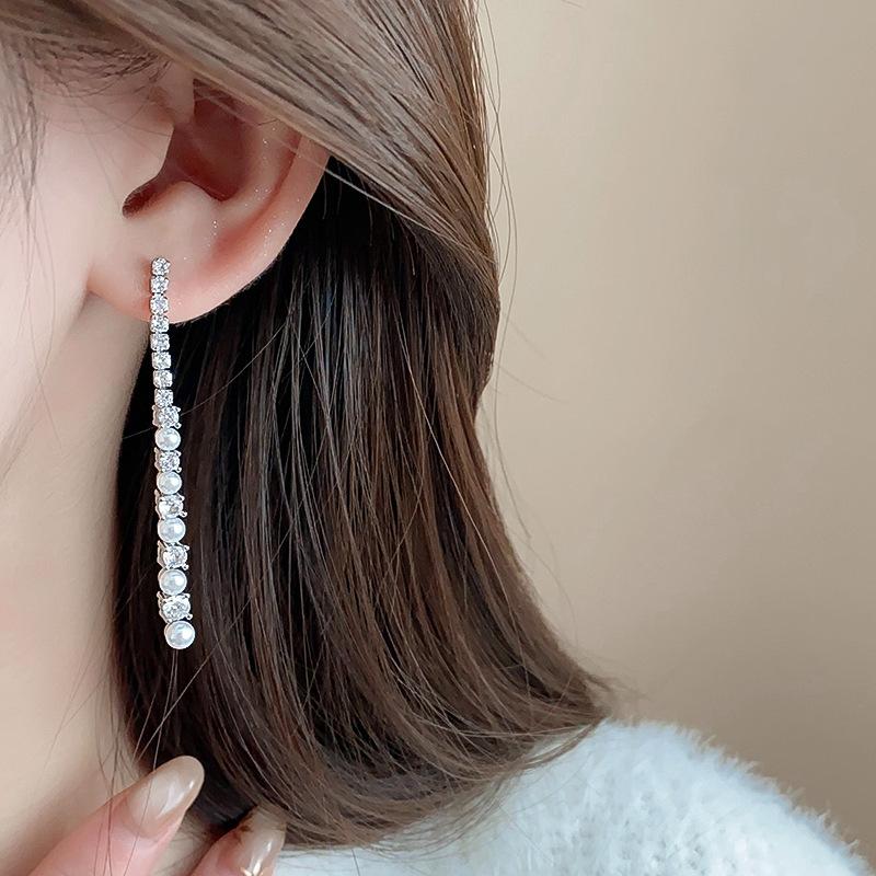 Aretes Geométricos de Borla de Perlas Aguja de Plata, Lujo Ligero, Alta Gama, Aretes Elegantes, Aretes Modernos y Versátiles, Aretes de Diseño