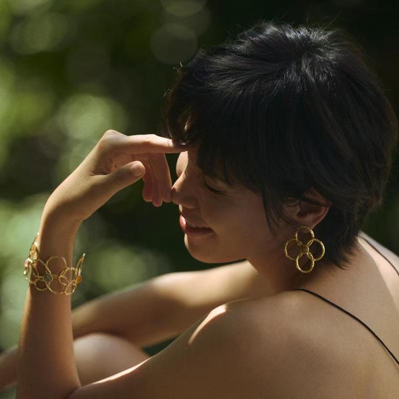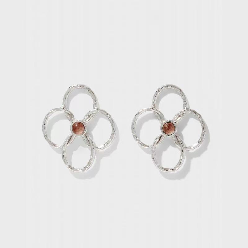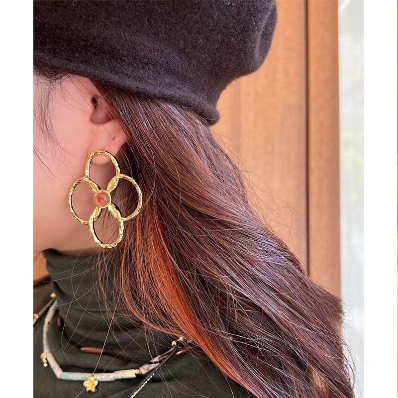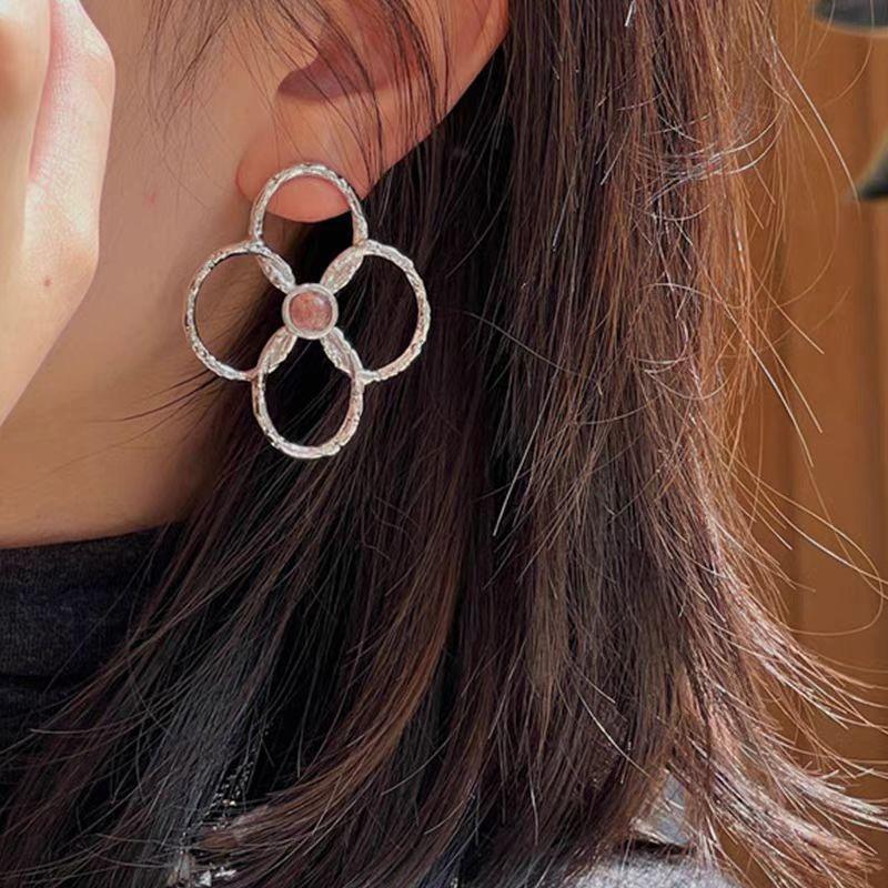 Pendientes de flores huecas con diseño de nicho, estilo frío, de metal, elegantes y a la moda, que combinan con todo.