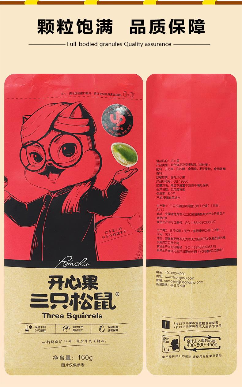 Three Squirrels Pistachio 160gX1 Bag, Three Squirrels Pistachio 160gX2 Bag, Three Squirrels Pistachio 160gX3 B...