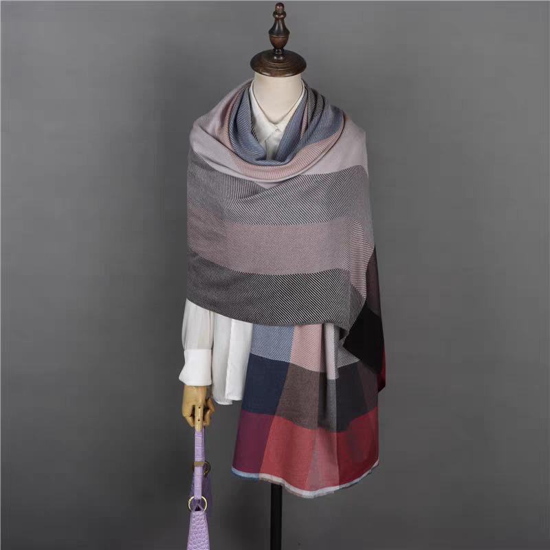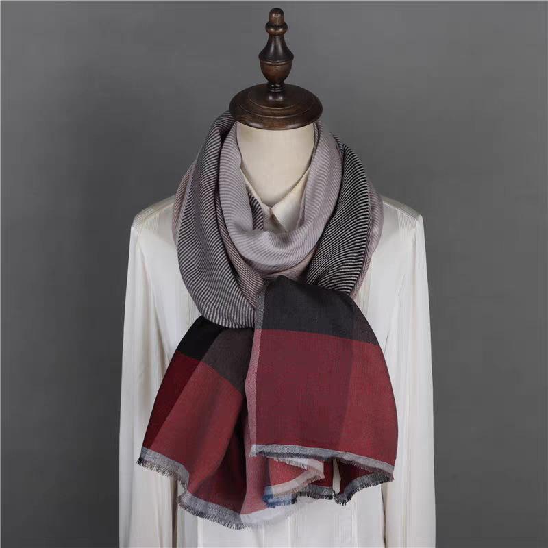 bufanda de seda a rayas cálida para otoño e invierno para mujer