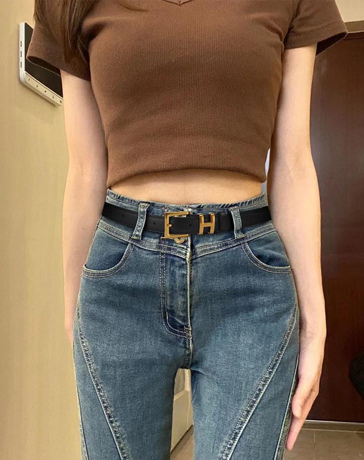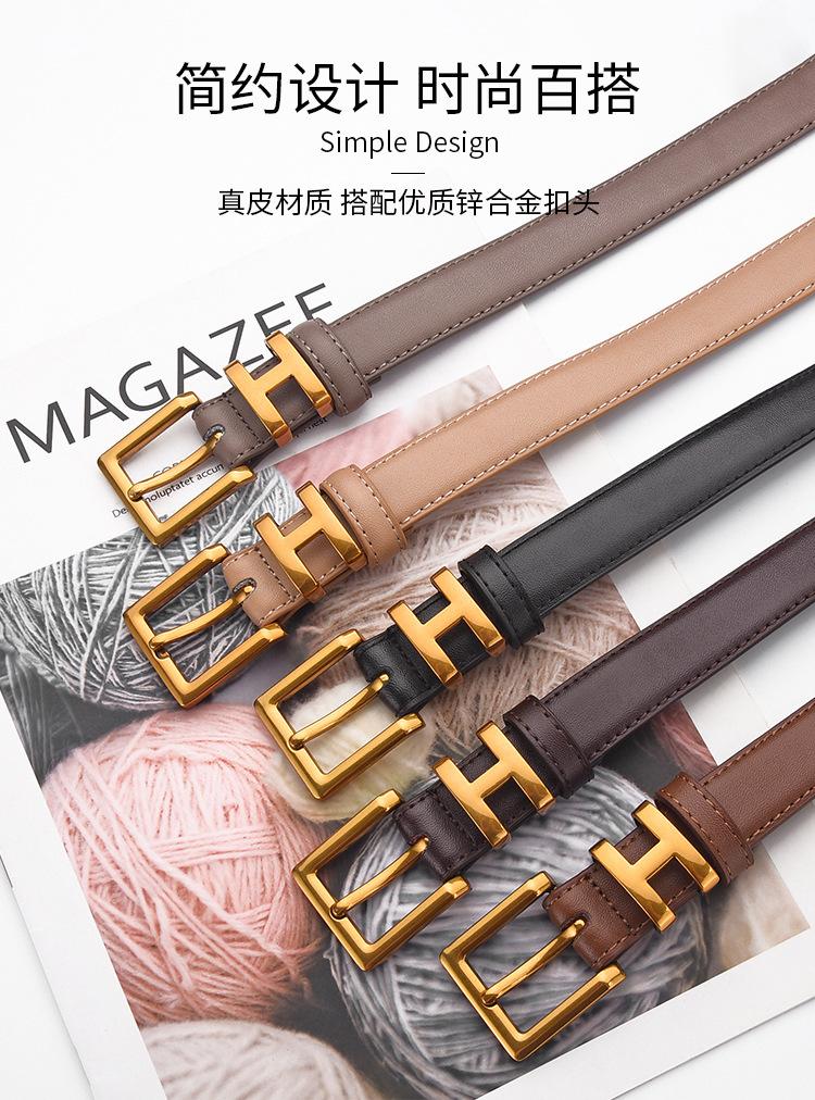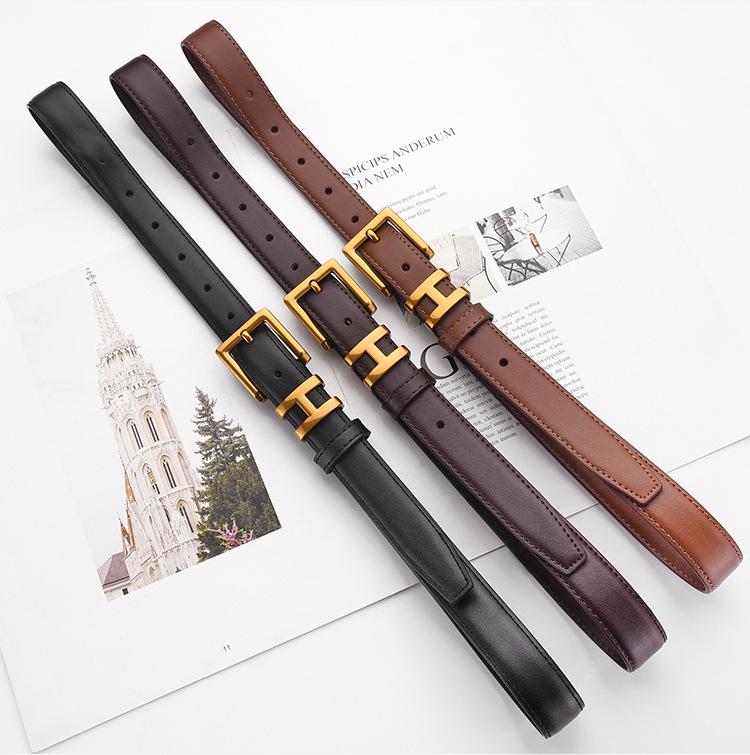 Cinturón de Mujer Nuevo Cuero Genuino Versátil Hebilla de Pasador Retro Cinturón Decorativo de Alta Gama Cinturón para Jeans Moderno de Moda al Por Mayor