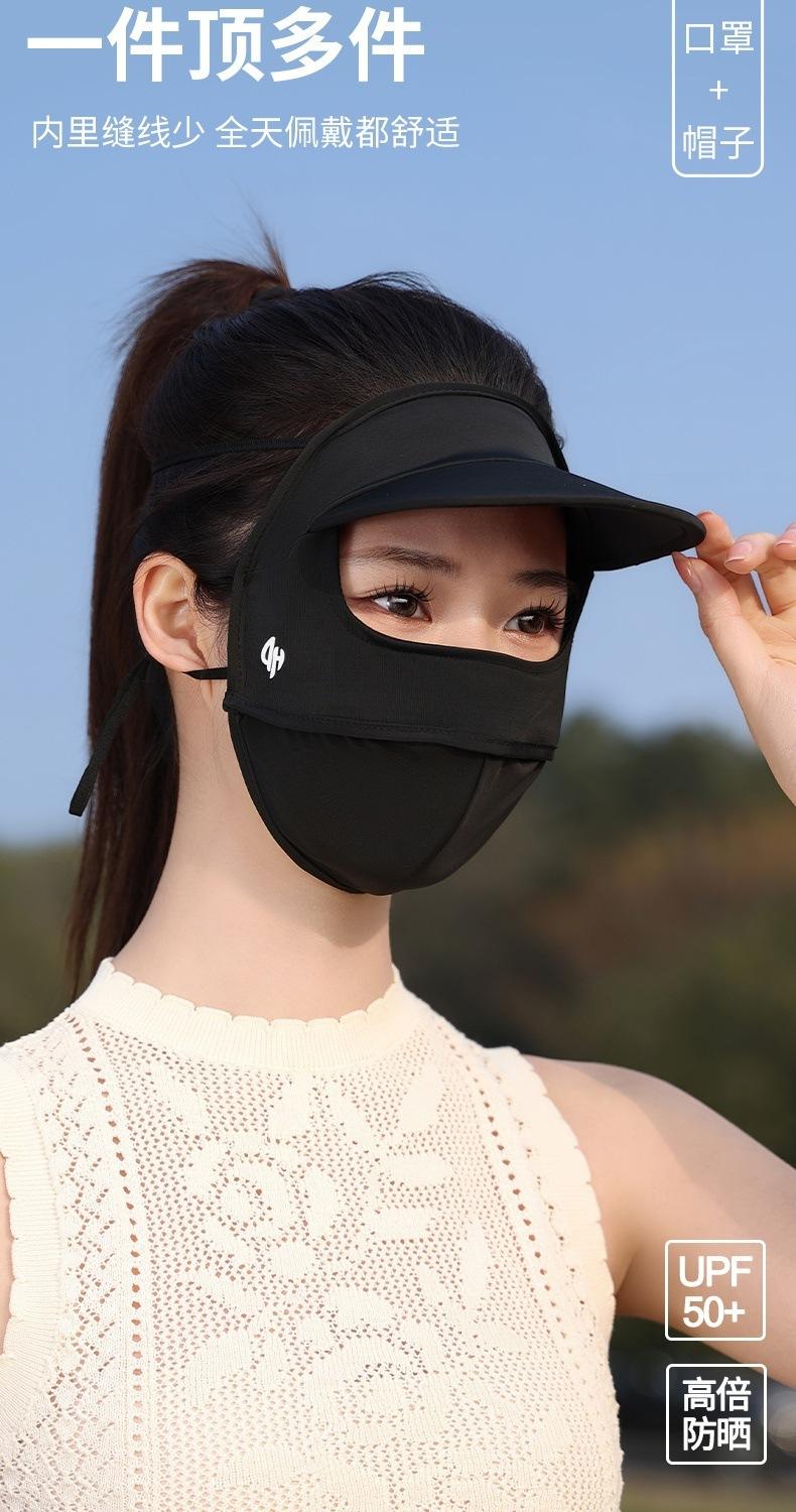 Mascarilla de Protección Solar de Verano para Mujeres, Sombrero de Cara Completa, Mascarilla de Seda de Hielo de Una Pieza, Mascarilla Facial para Conducir, Parasol Anti-UV, Transpirable