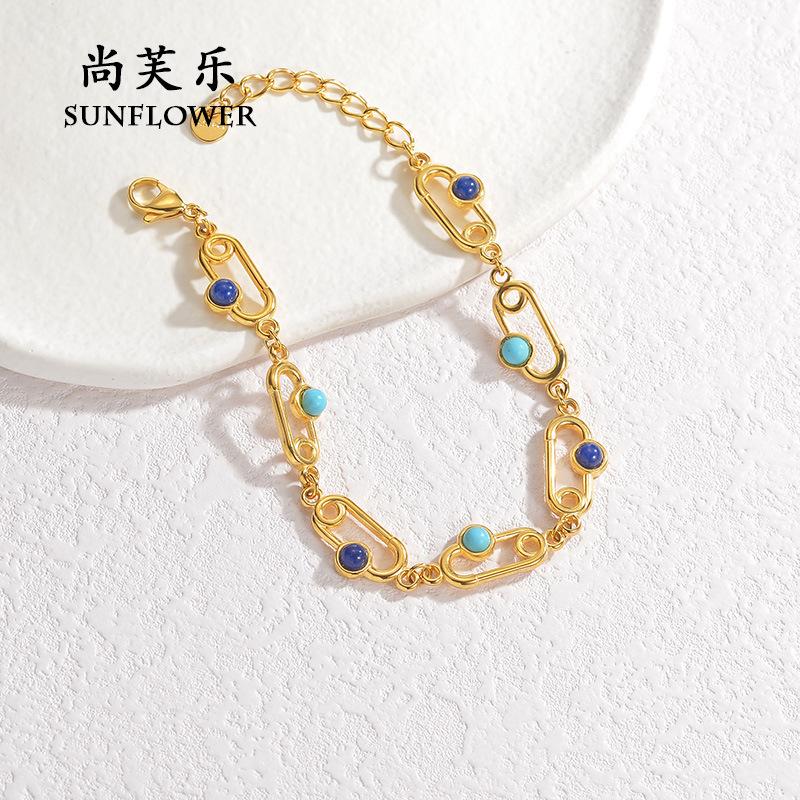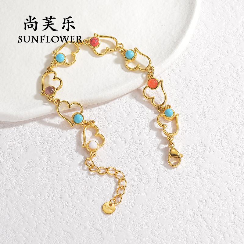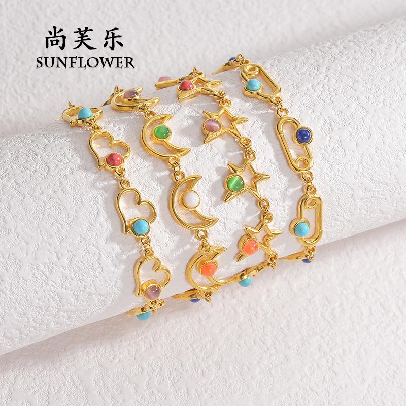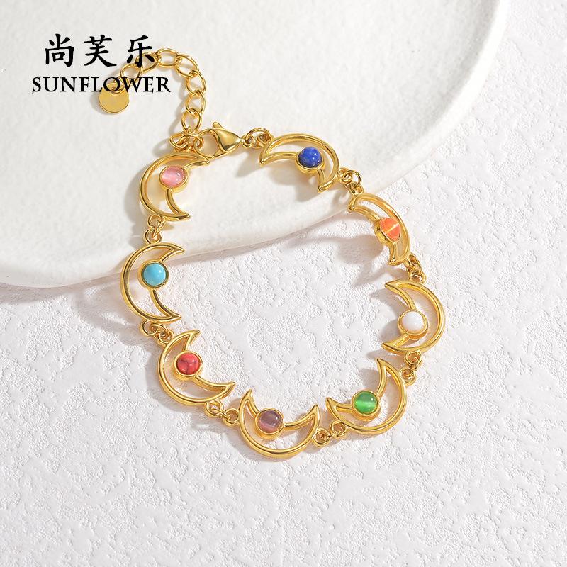Pulsera transfronteriza nueva, elegante y exquisita de acero de titanio color turquesa para mujer, pulsera creativa de nicho con amor de luna simple
