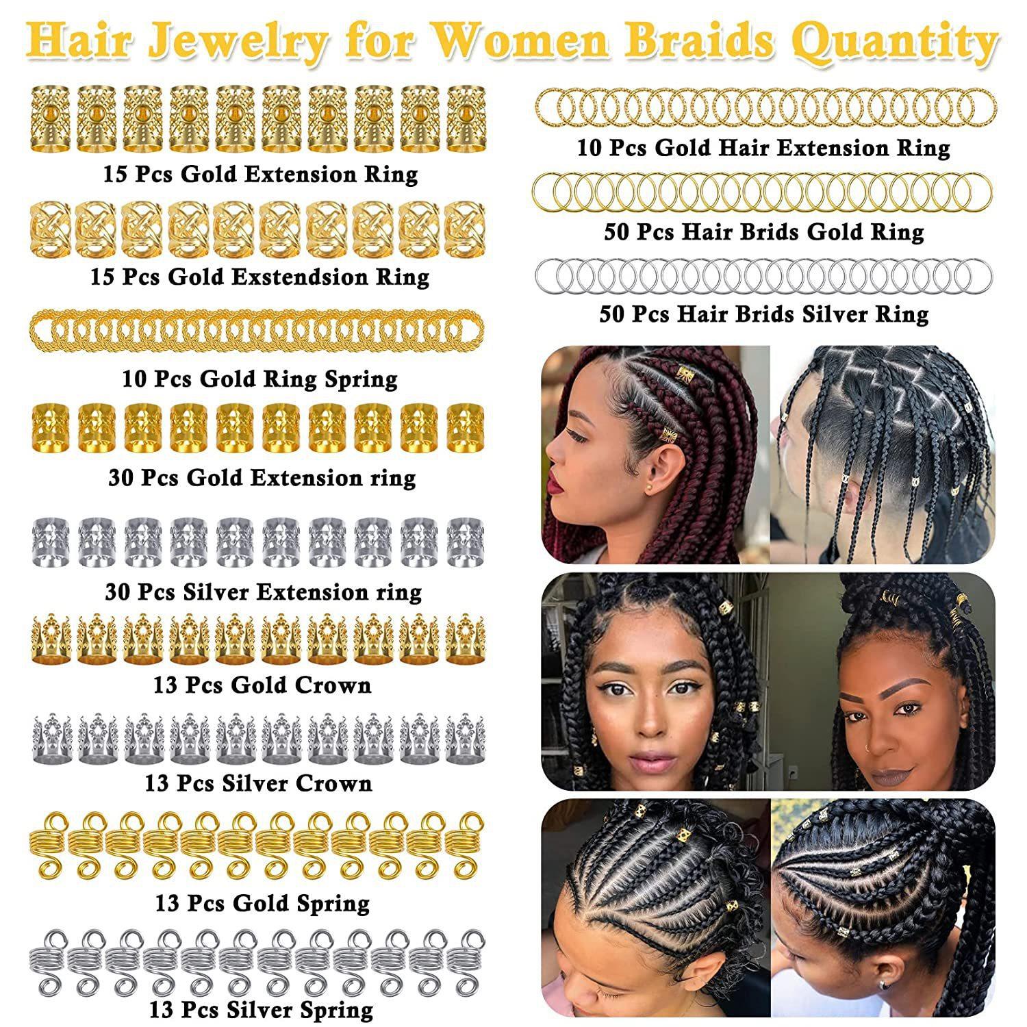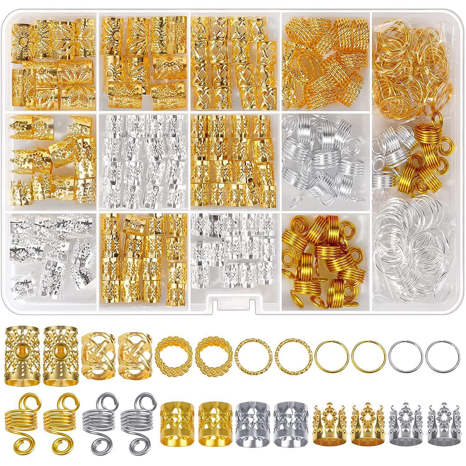262 Piezas aleación trenza grande hueca anillo receptor de cabello trenza sucia anillo para el cabello peluca de cinco espirales accesorios de joyería para trenza sucia