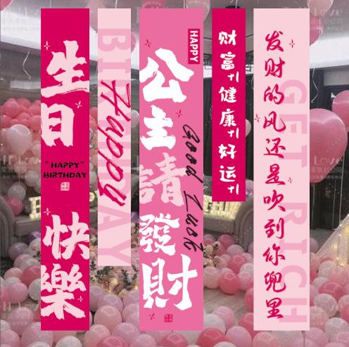 Fondo de cumpleaños de princesa, decoración de tela, pancarta colgante, ambiente de fiesta, arreglo de fotos, accesorios colgantes de tela.