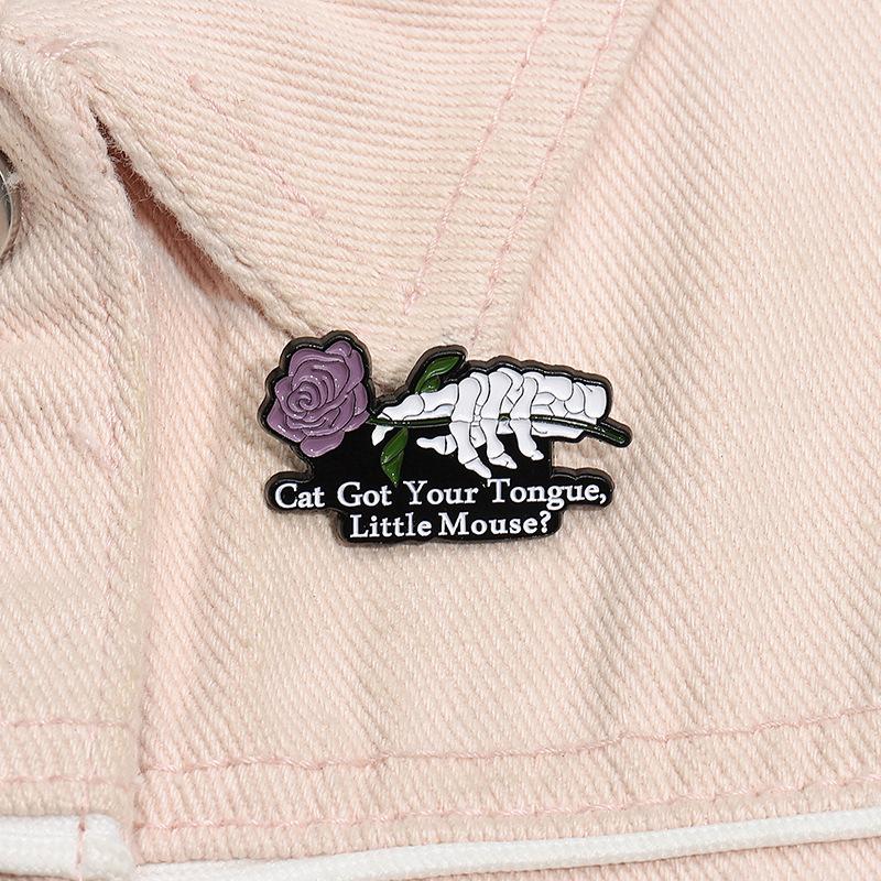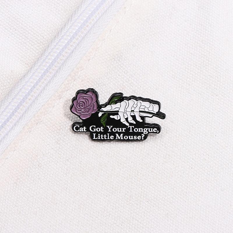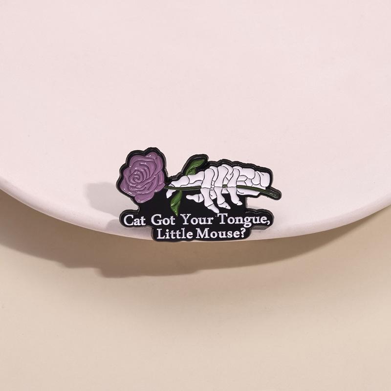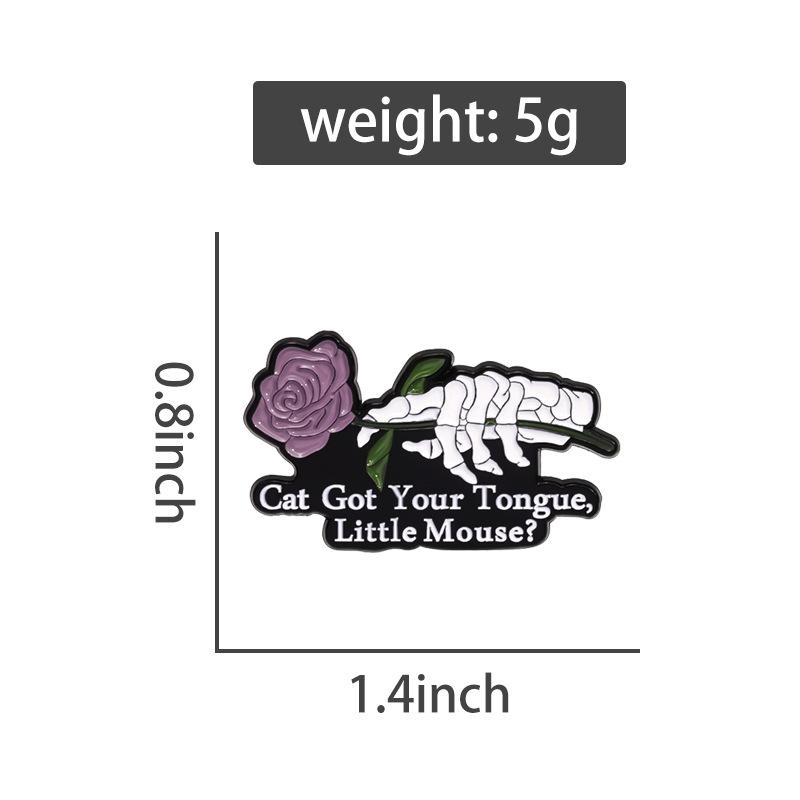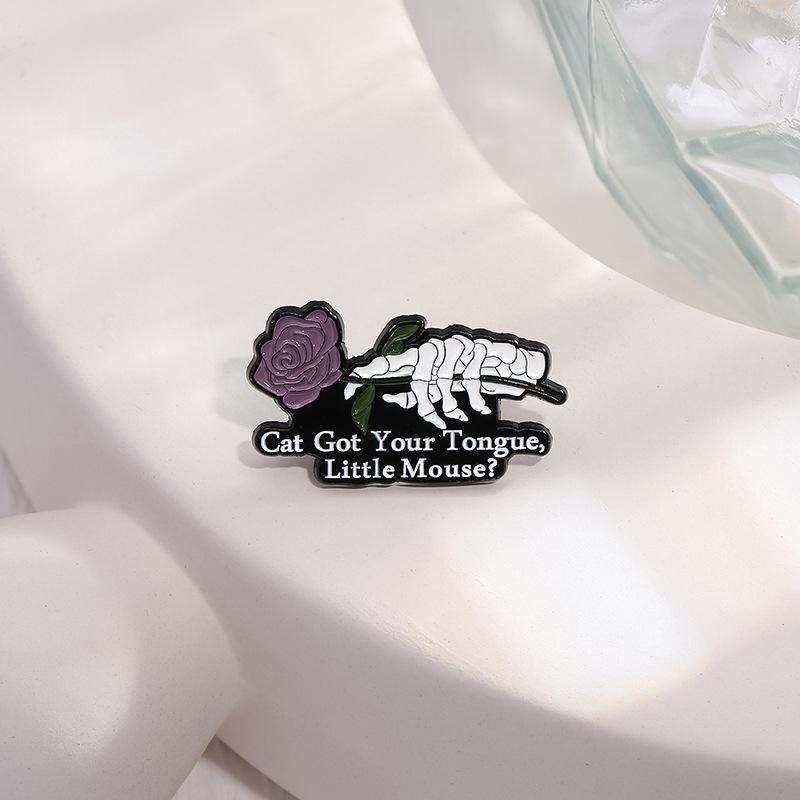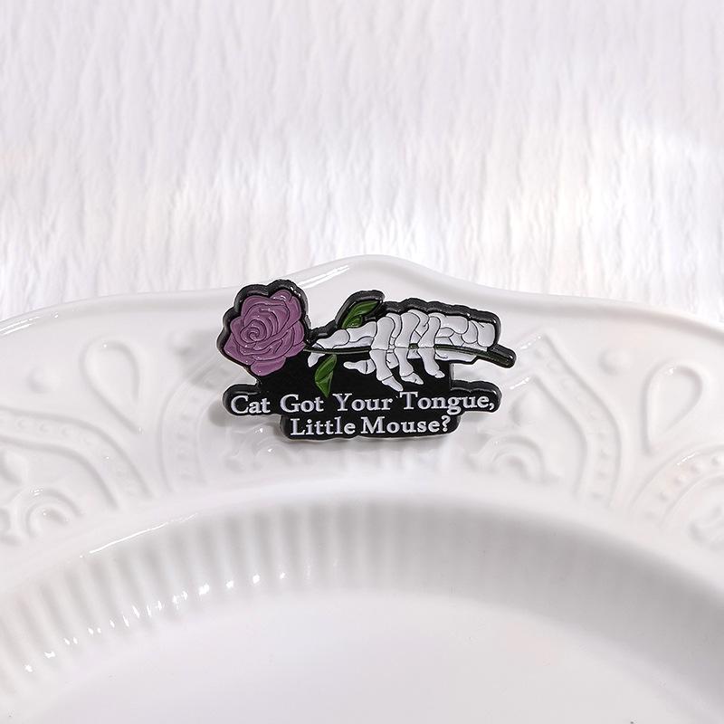 Broche Metálico Europeo y Americano Transfronterizo Calavera Palma Romántico Oscuro Creativo Dibujo Animado Mano Sosteniendo Patrón de Rosa Letra