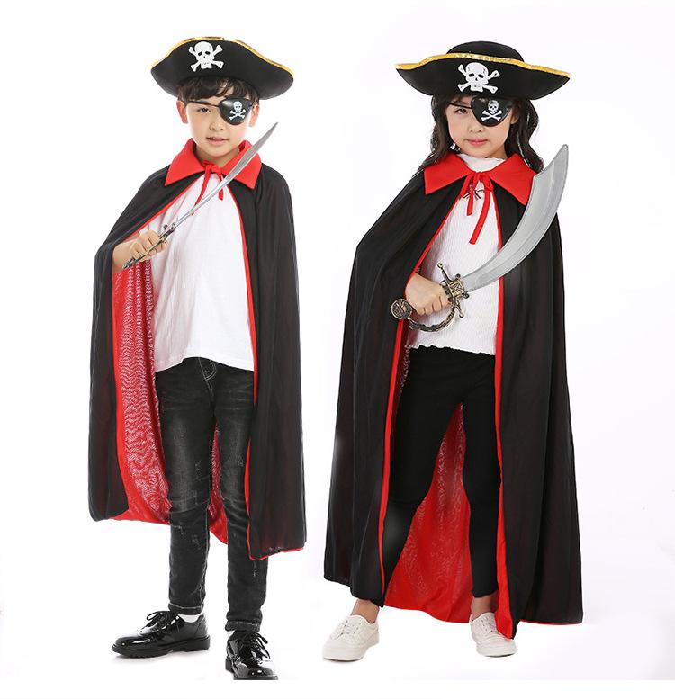 Capa de Halloween para niños y adultos, cosplay, negro, rojo, doble capa, pirata, capa de la muerte