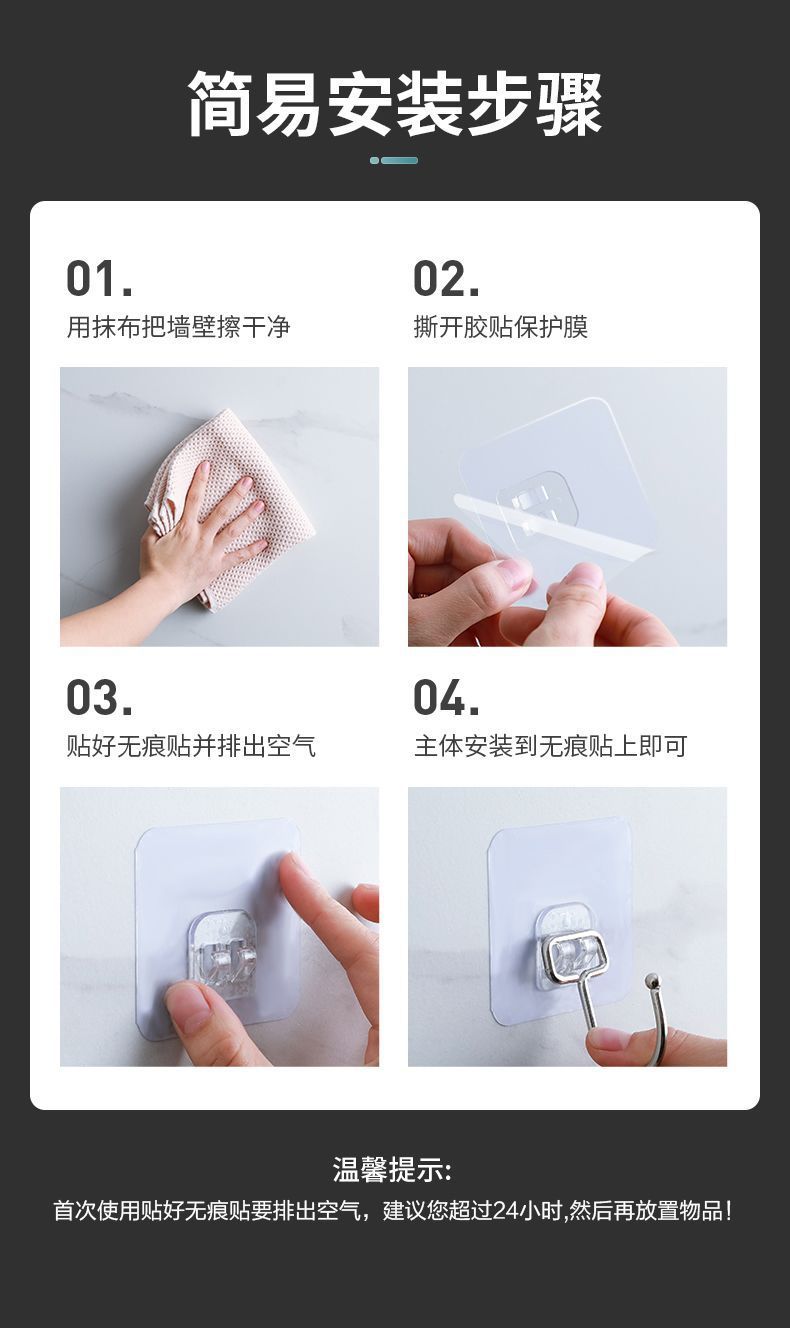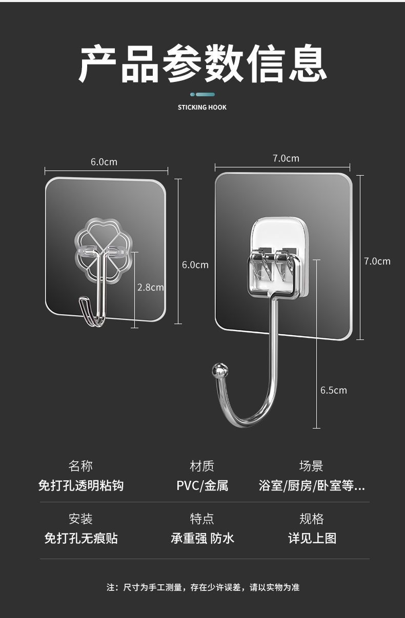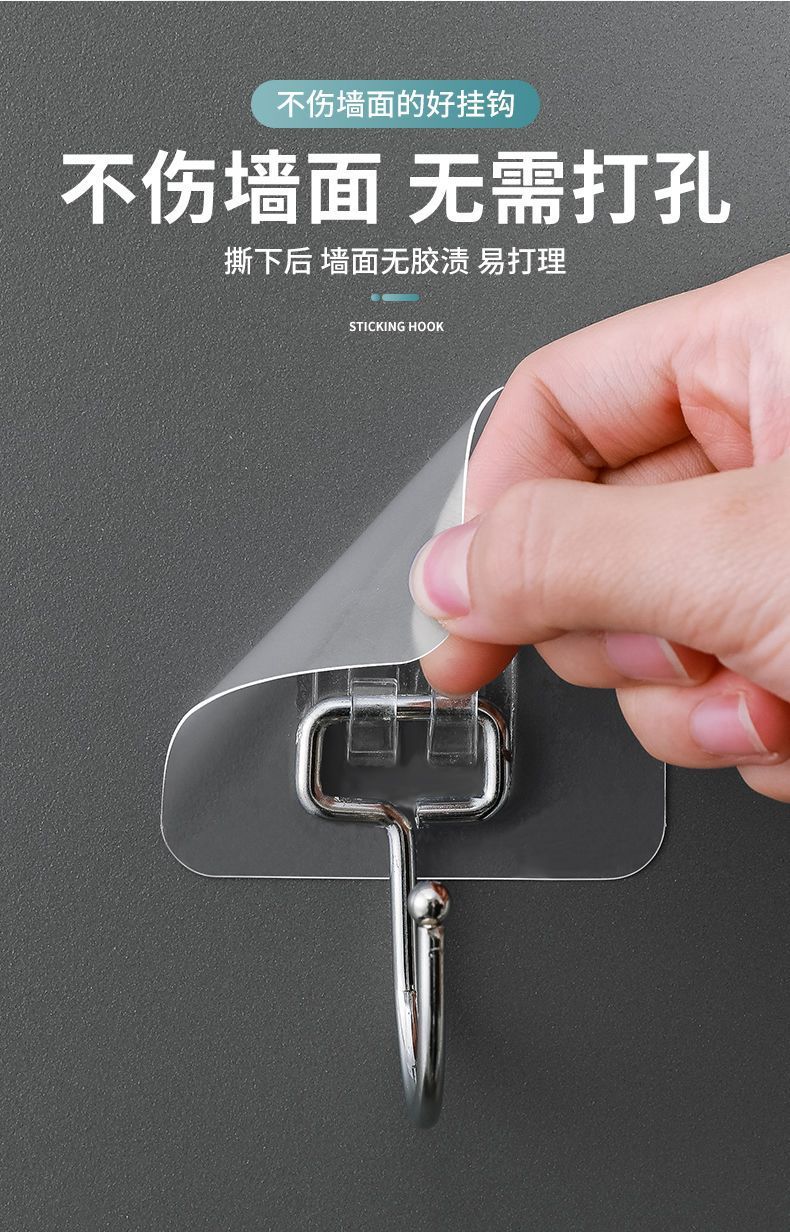 Gancho adhesivo fuerte para colgar en la pared, transparente, sin costuras, para cocina, sin perforaciones, adhesivo