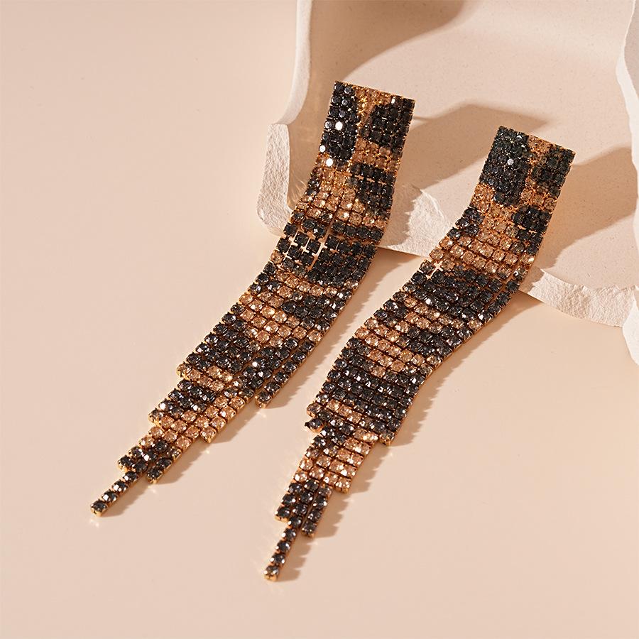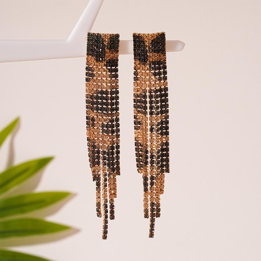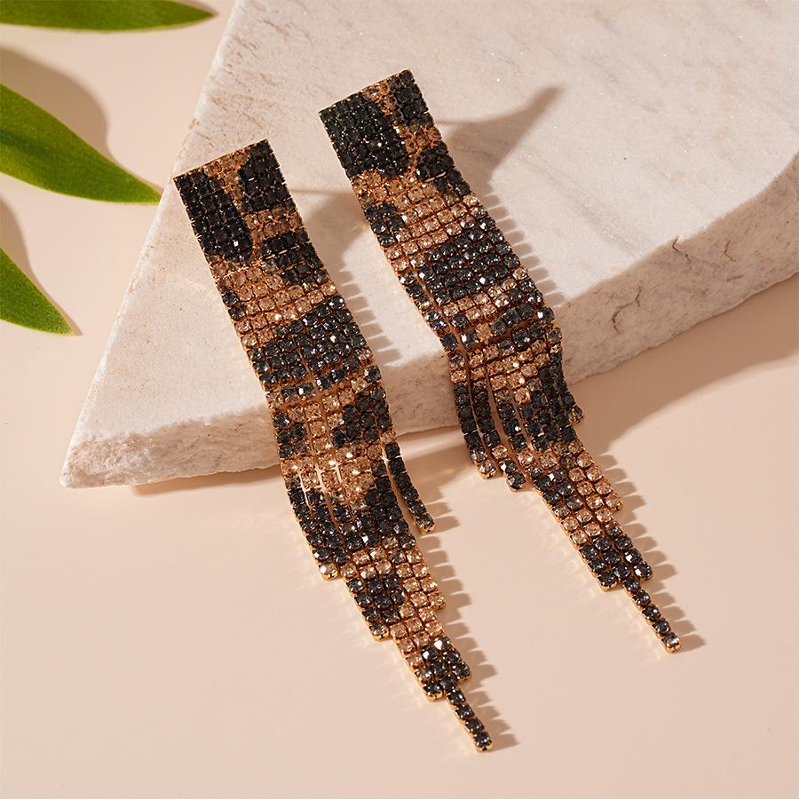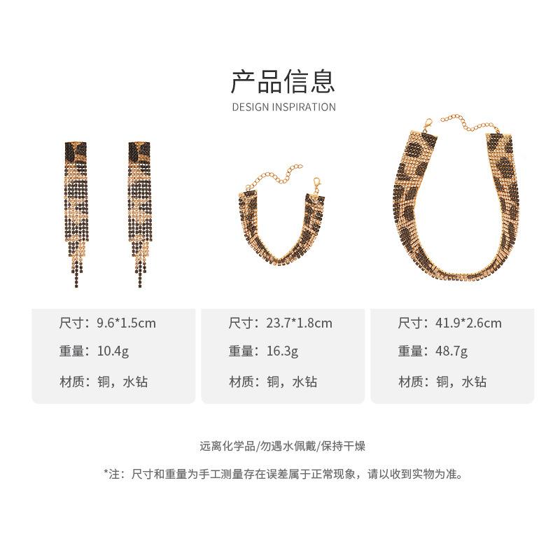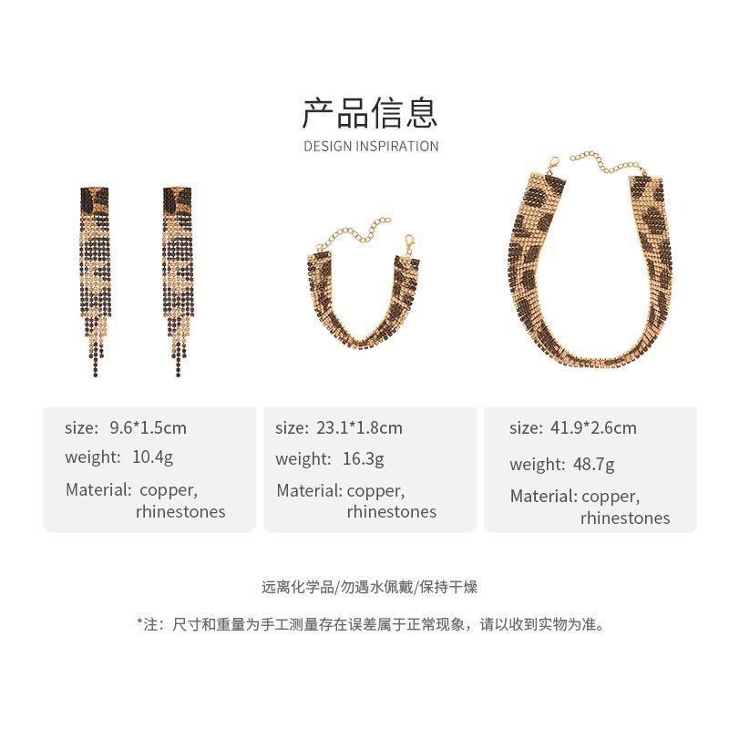 Steel needle-leopard print diamond tassel earrings, Leopard print diamond necklace, Leopard print diamond bracelet