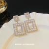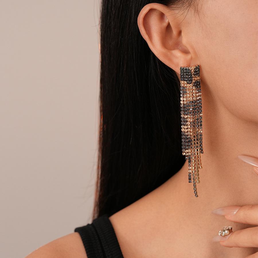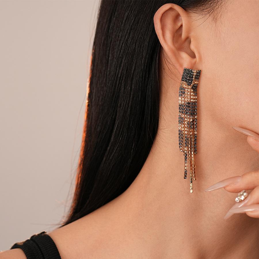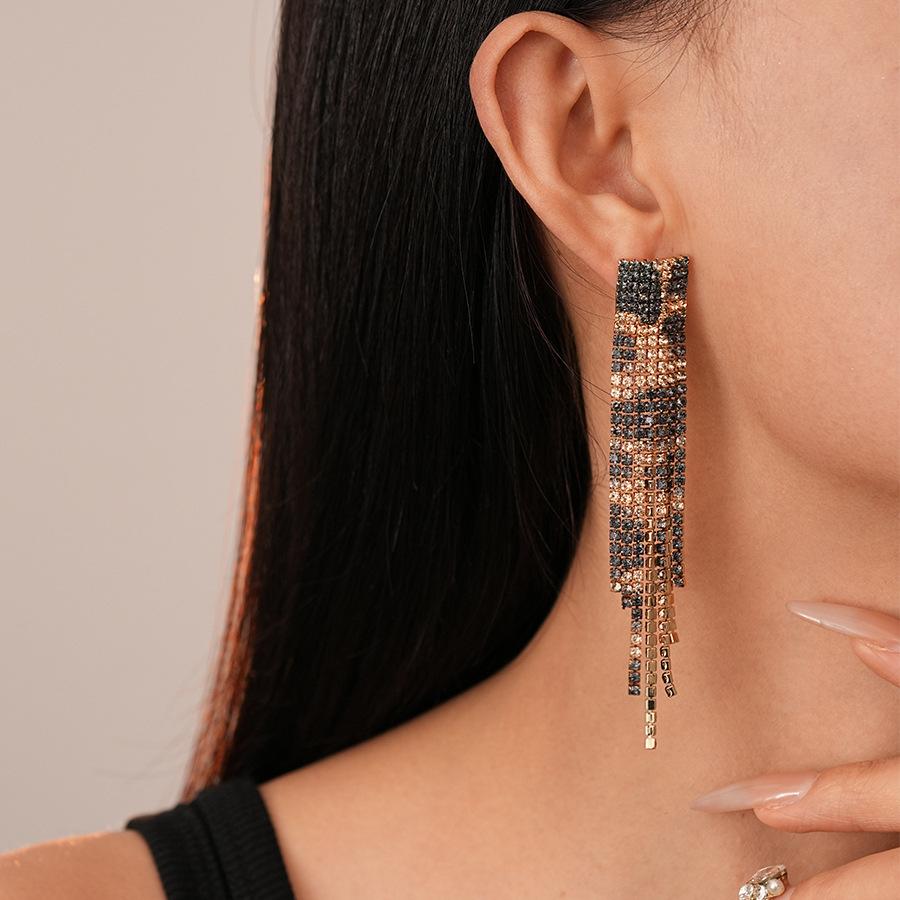 Aretes Retro Leopardo Diamante Rectangular Borla Plata Aretes Europeos y Americanos de Lujo Ligero Nicho Elegantes de Alta Gama para Mujer