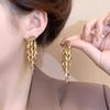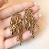 Pendientes de borla de hoja curva de aguja plateada, exagerados, dorados, de borla larga, de espiga de trigo, temperamentales, netos rojos, pendientes de otoño e invierno