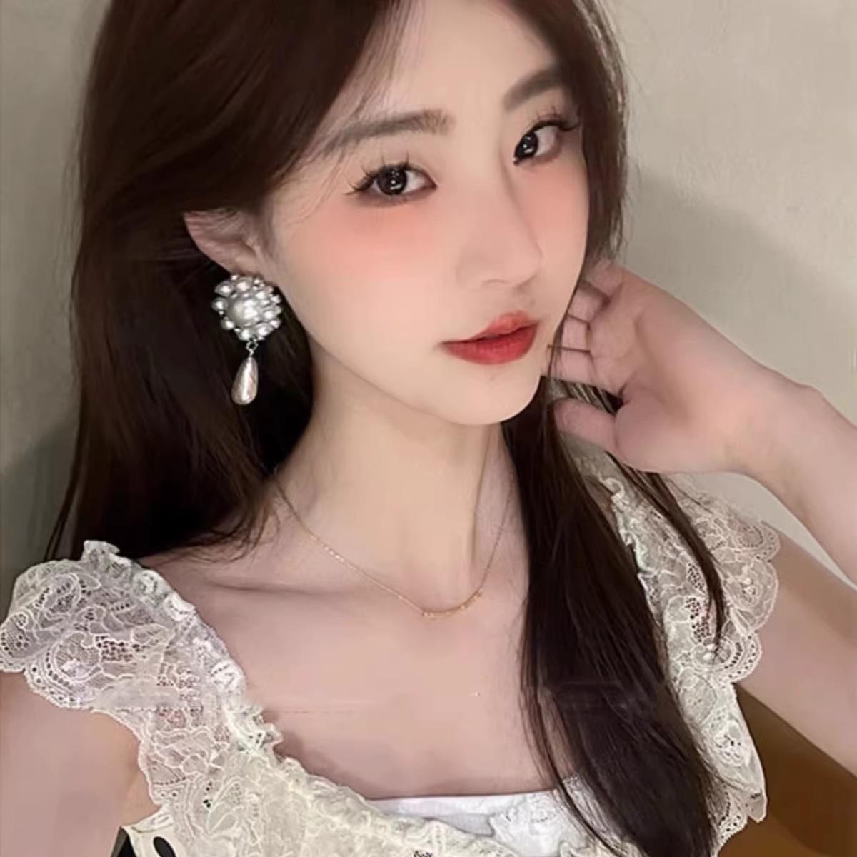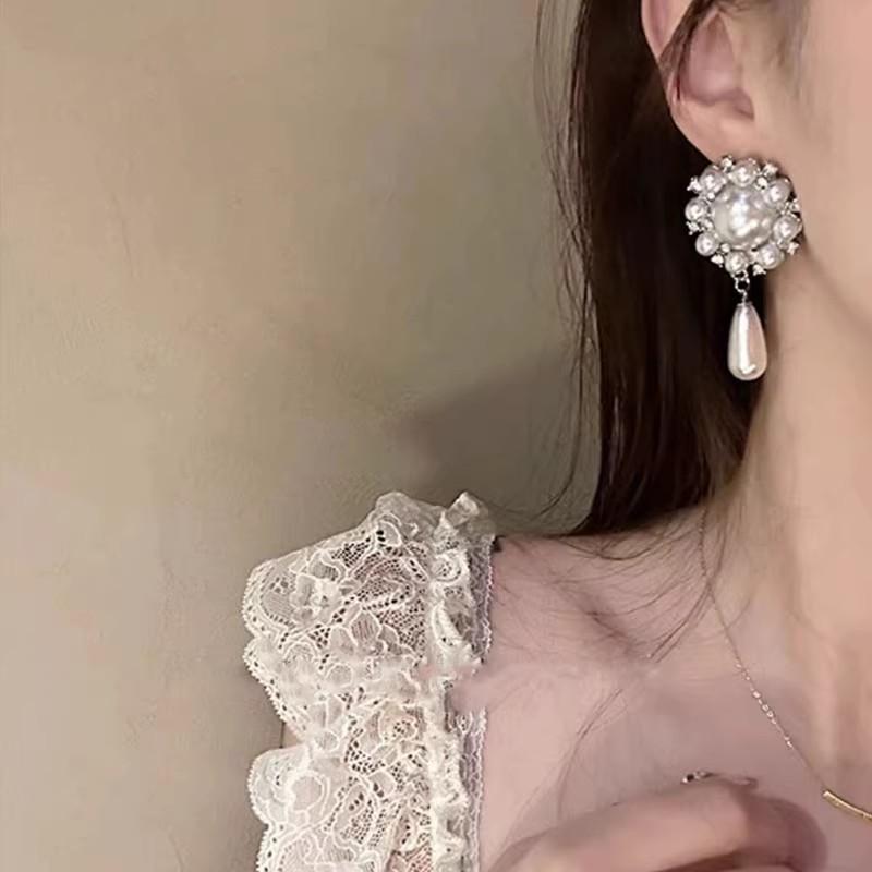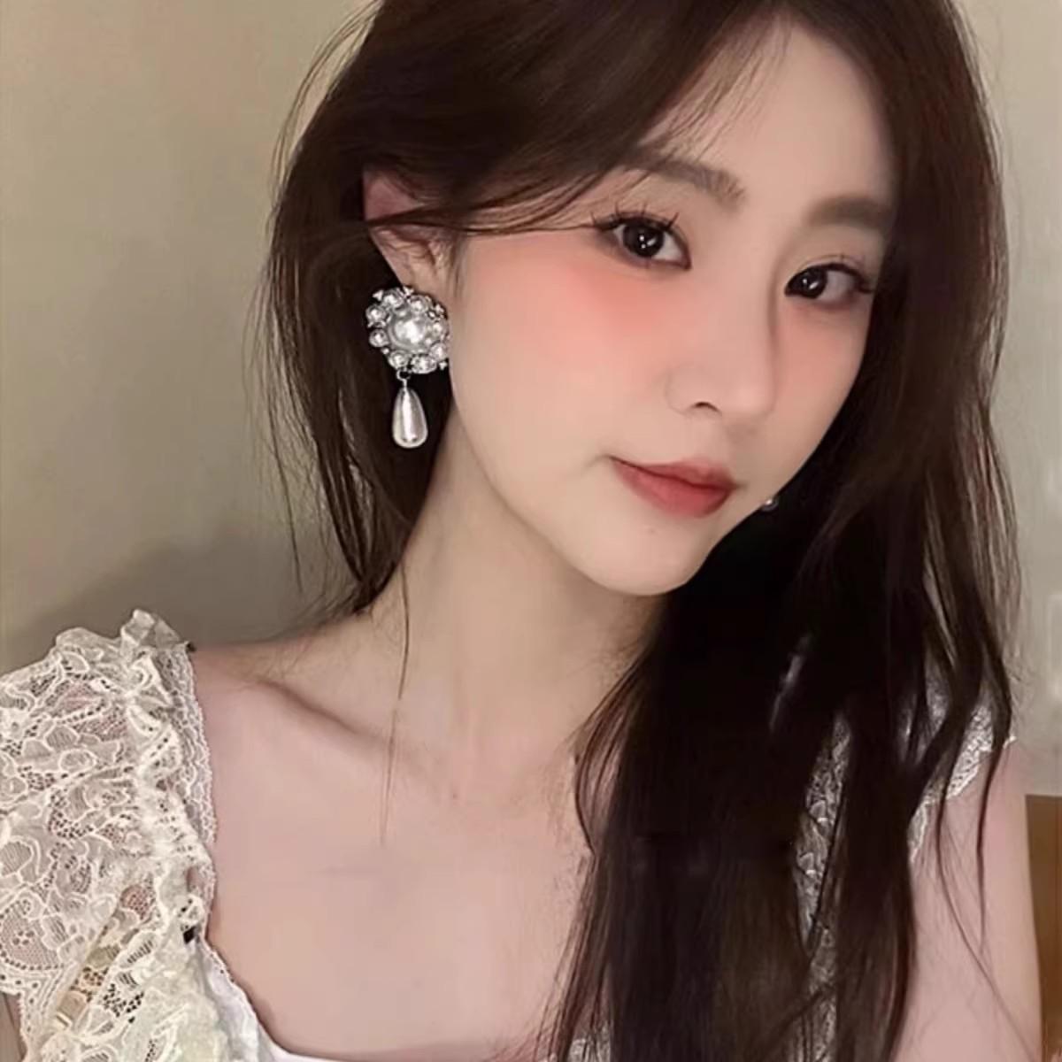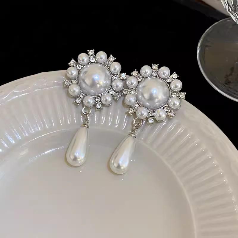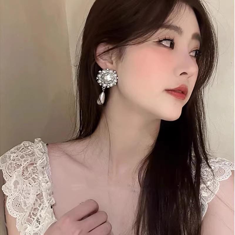 Pendientes de lujo ligeros de alta gama con perla y diamantes, elegantes, retro, exagerados, con girasoles, sencillos y distintivos.