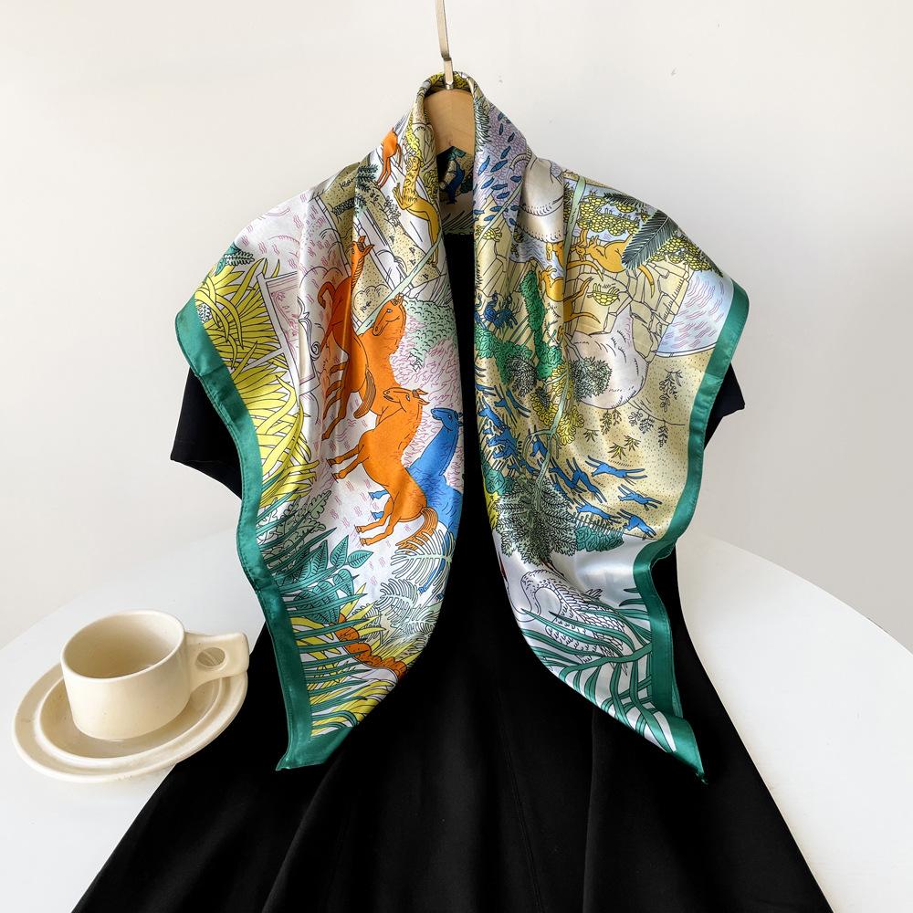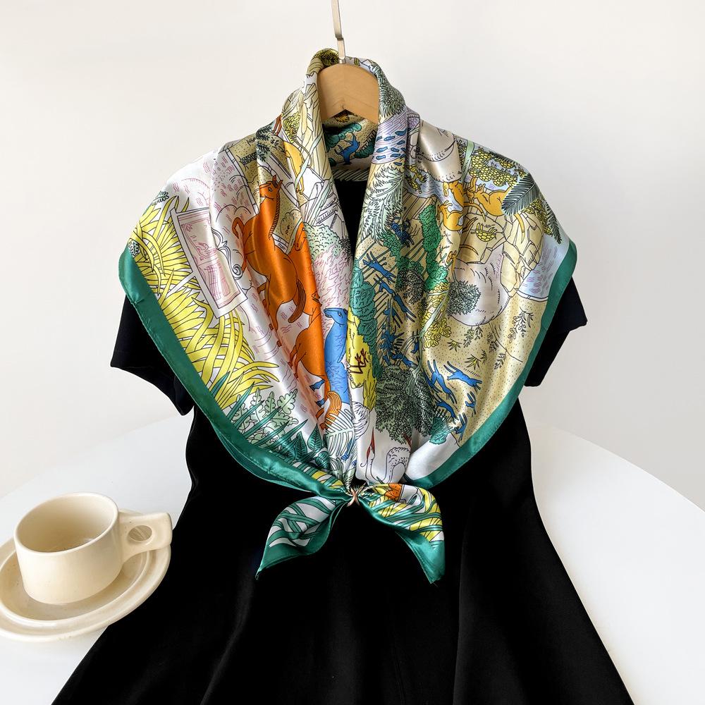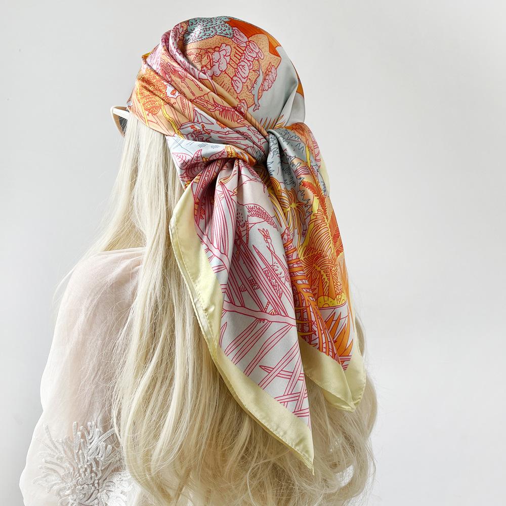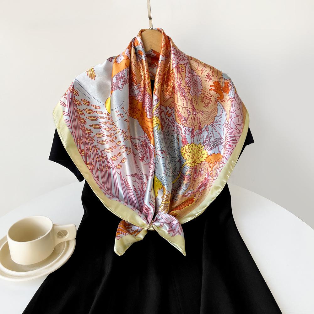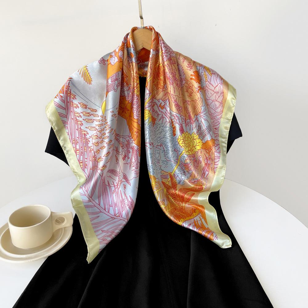 Bufanda 90cm Nueva Bufanda Cuadrada Grande Bufanda Estilo Hada para Mujer Chal Pañuelo para la Cabeza Estampado Bufanda de Satén Fresca Venta al por Mayor Personalizado