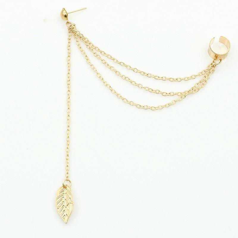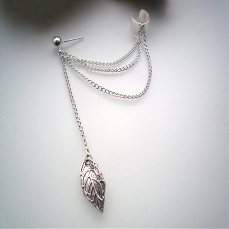 Pendientes con personalidad europea y americana, clip de oreja de metal transfronterizo, hojas, borla, uña, clip de hueso de oreja, hebilla de oreja invisible coreana, única