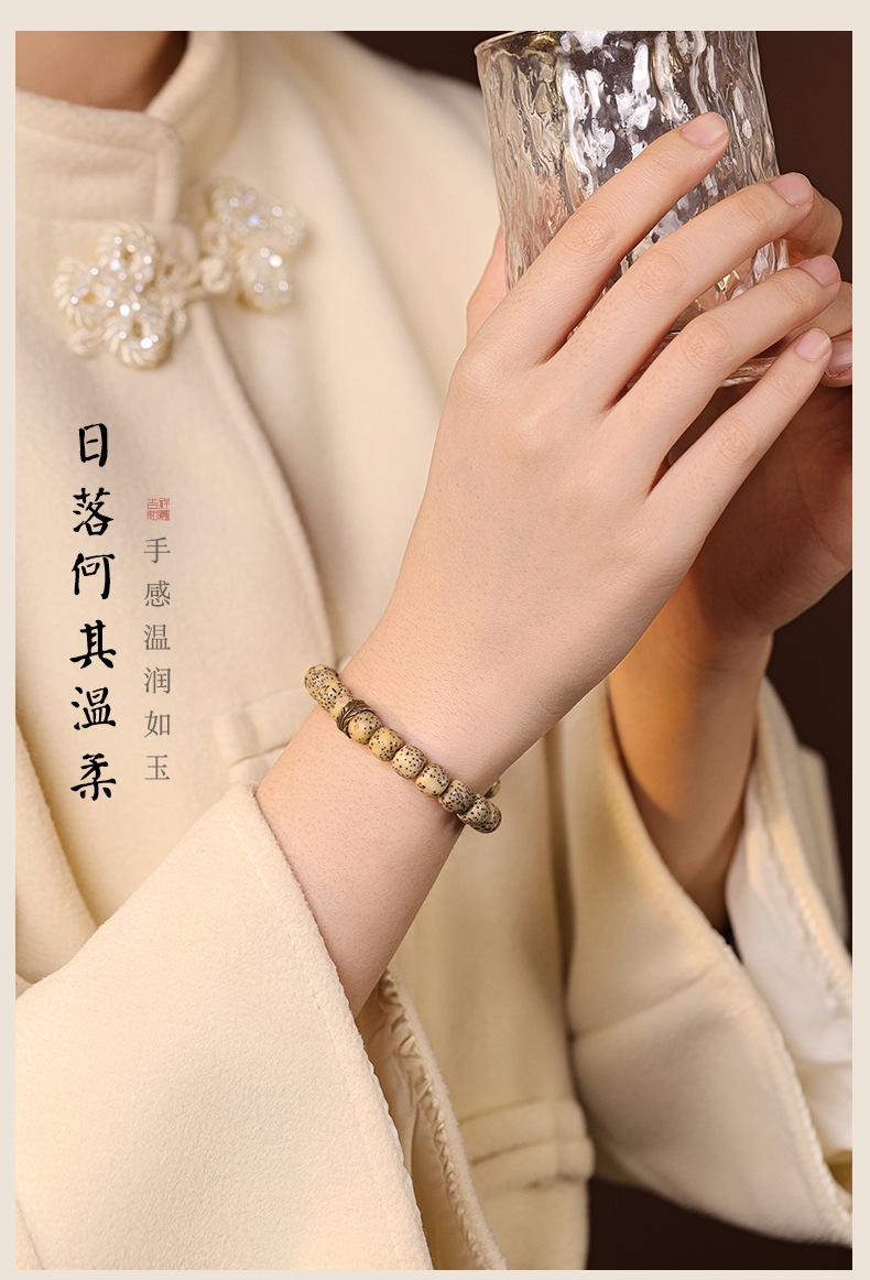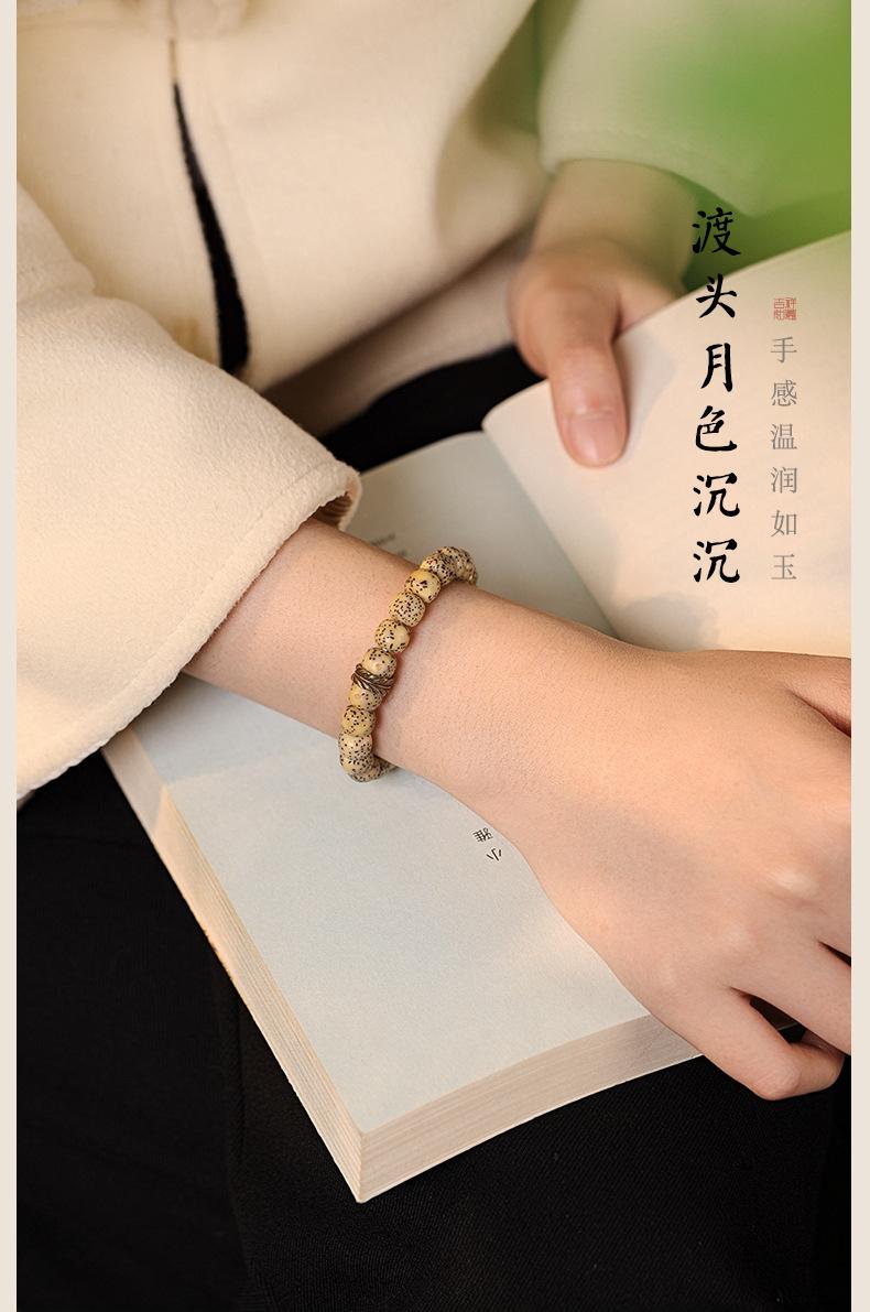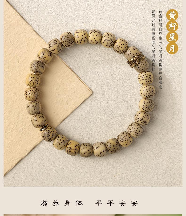 Pulsera Original de Bodhi Estrella Luna Semilla de Oro de Hainan para Mujer, de una Sola Vuelta, Productos Genuinos, Cuentas de Pluma, Pulsera para Jugar