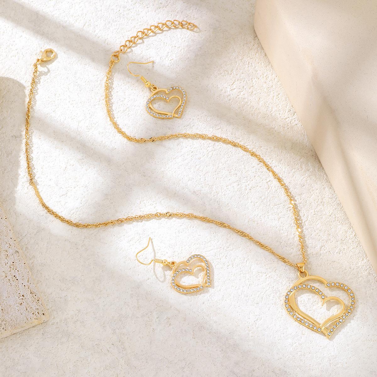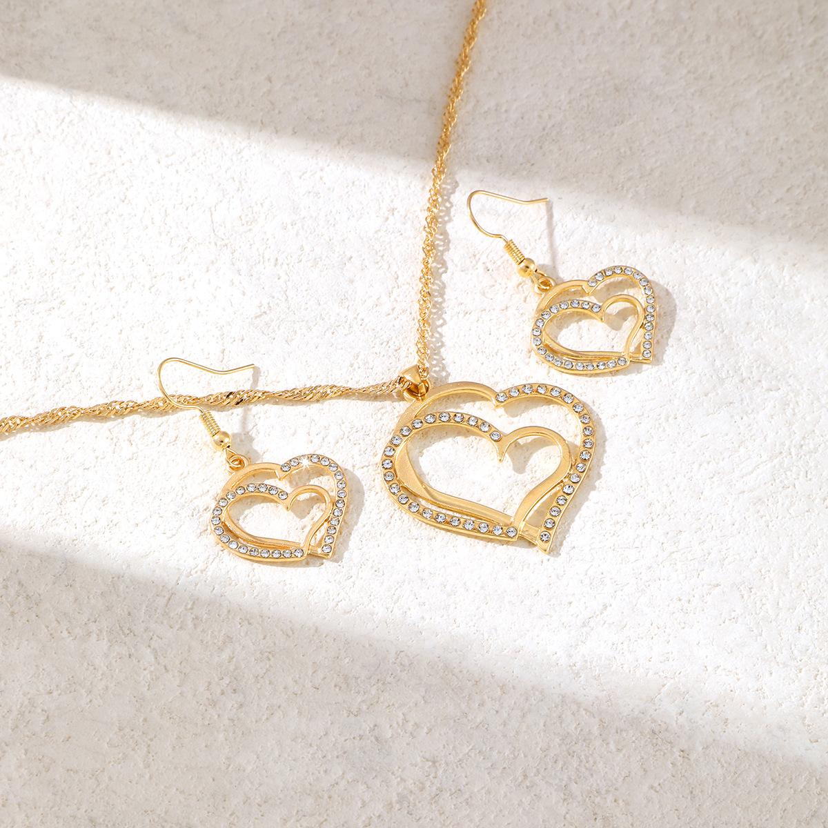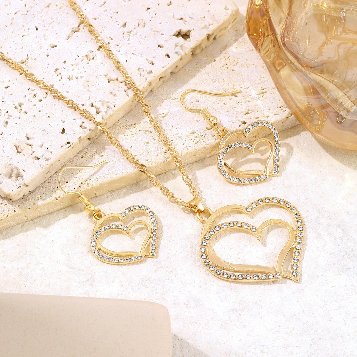 Conjunto de joyería de amor para mujeres europeas y americanas, estilo retro, personalidad de moda, aleación con incrustaciones de diamantes, colgante de corazón hueco, collar y pendientes