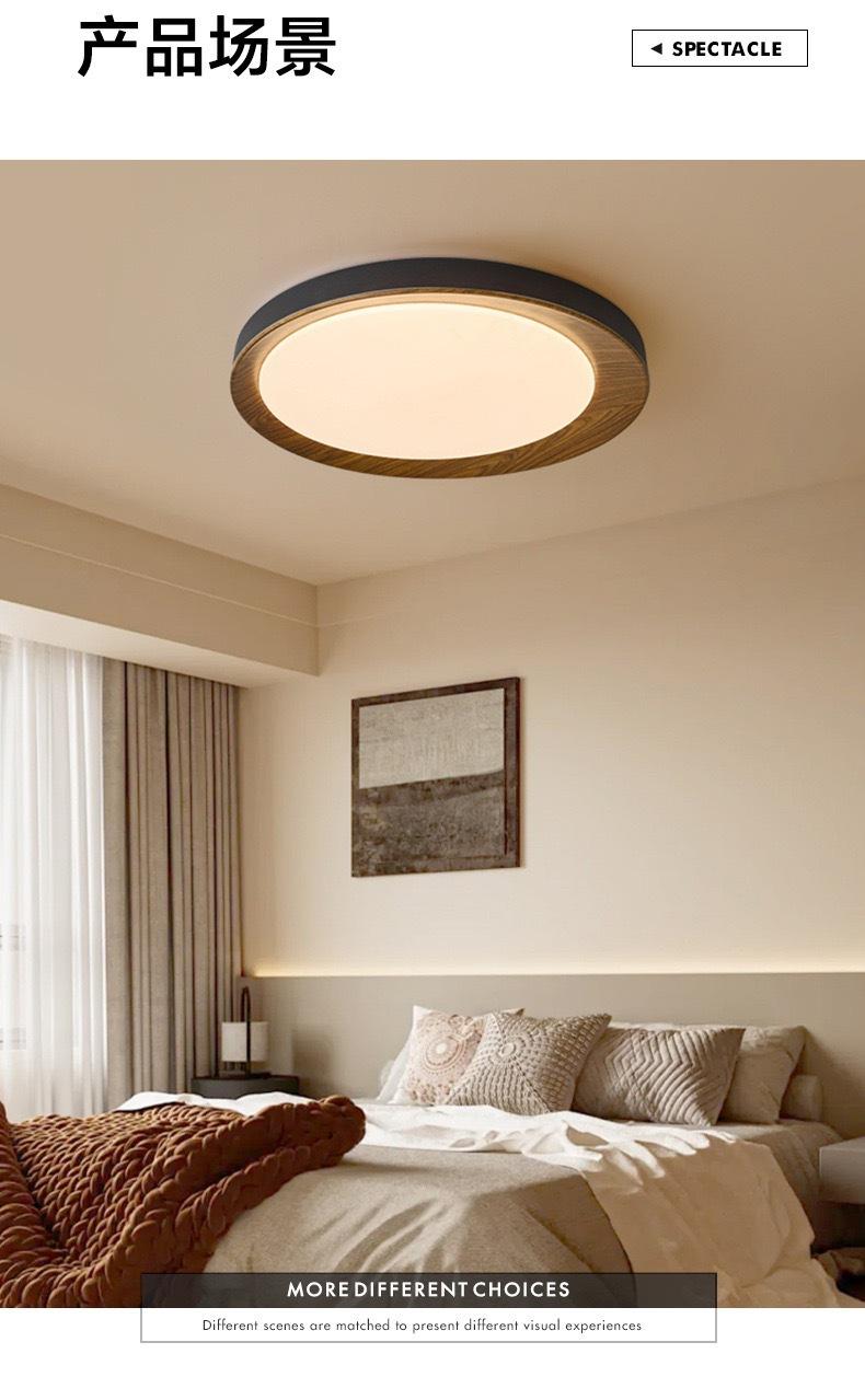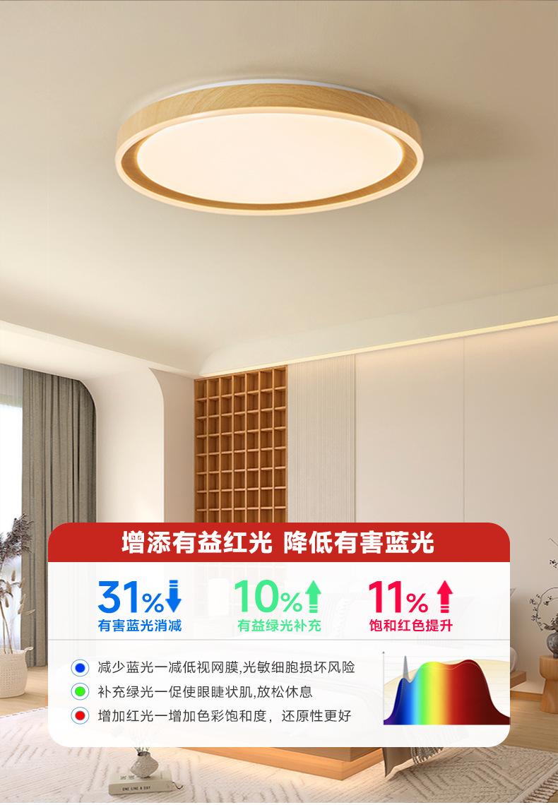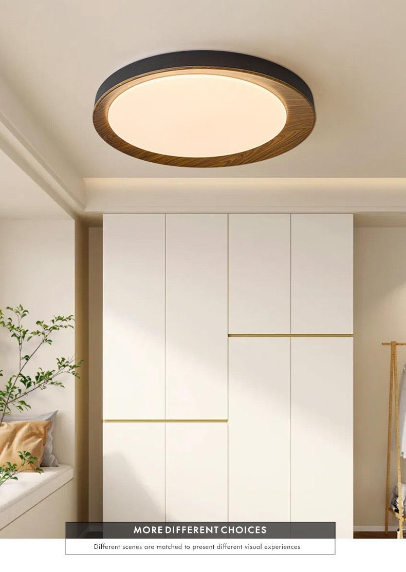 Lámpara de Estudio Redonda Ultrafina Espectro Completo Estilo Tronco Lámpara de Techo para Dormitorio Moderna Simple Retro Veta de Madera Lámpara B&b