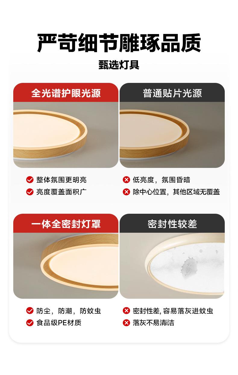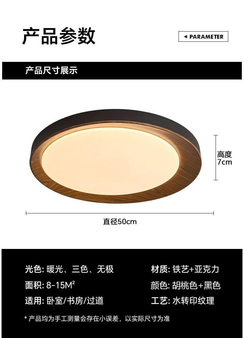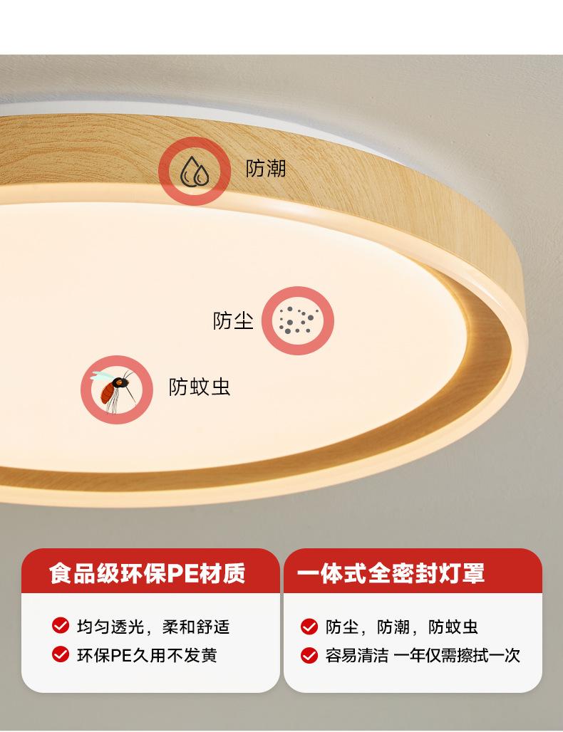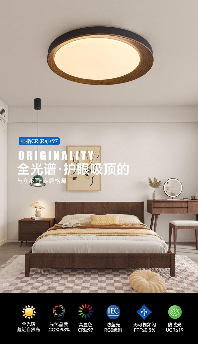 Lámpara de Estudio Redonda Ultrafina Espectro Completo Estilo Tronco Lámpara de Techo para Dormitorio Moderna Simple Retro Veta de Madera Lámpara B&b