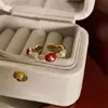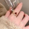 Anillo Abierto de Rosa con Esmalte Rojo Inglés para Mujer, Retro Elegante, Apilable, Lujo Ligero, Anillo de Dedo de Alta Gama