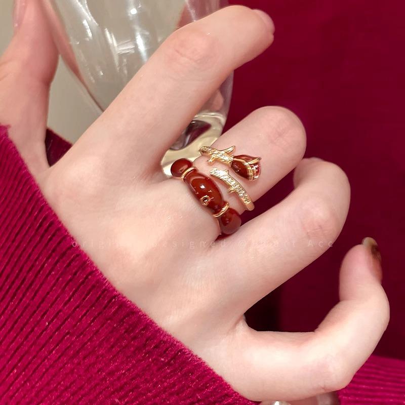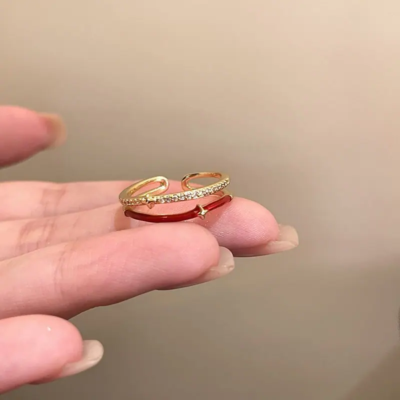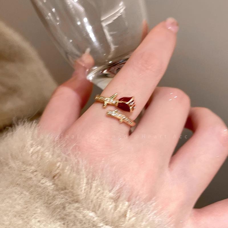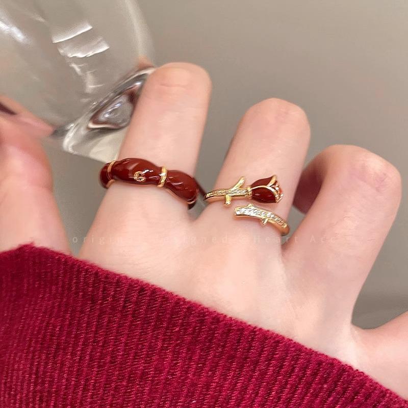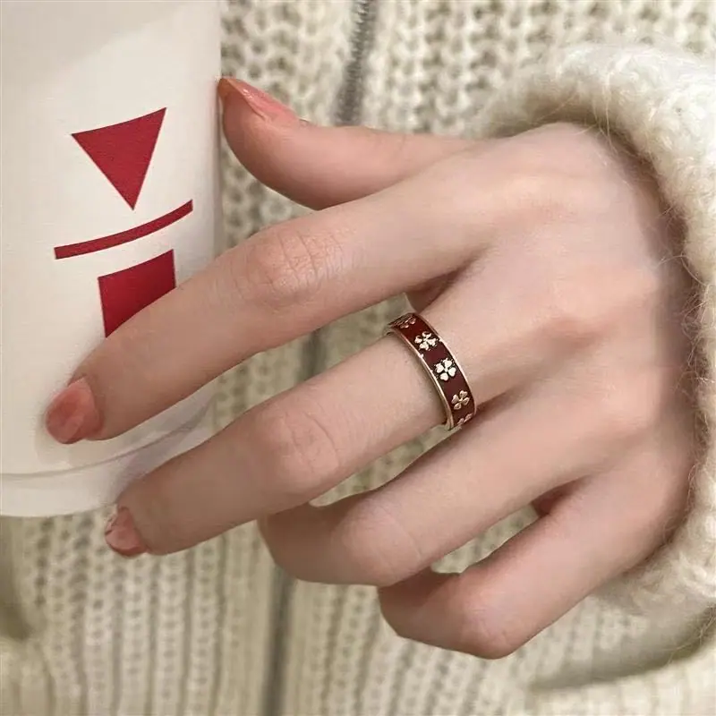 Compra Anillo Abierto de Rosa con Esmalte Rojo Inglés para Mujer, Retro Elegante, Apilable, Lujo Ligero, Anillo de Dedo de Alta Gama al por mayor en Joom.pro