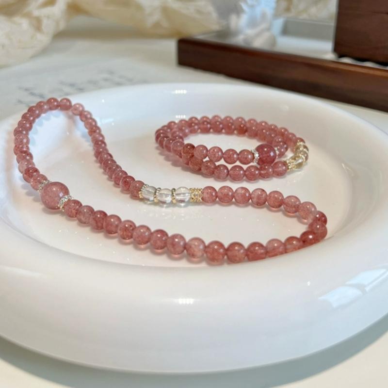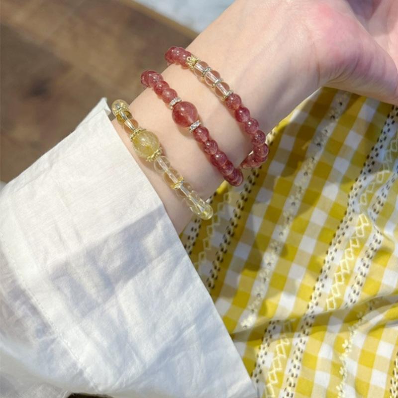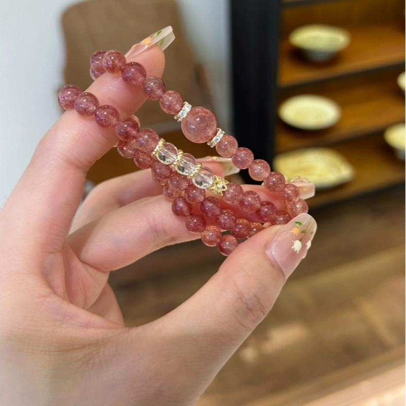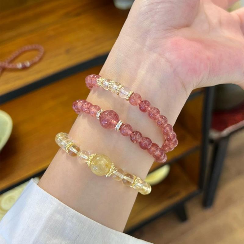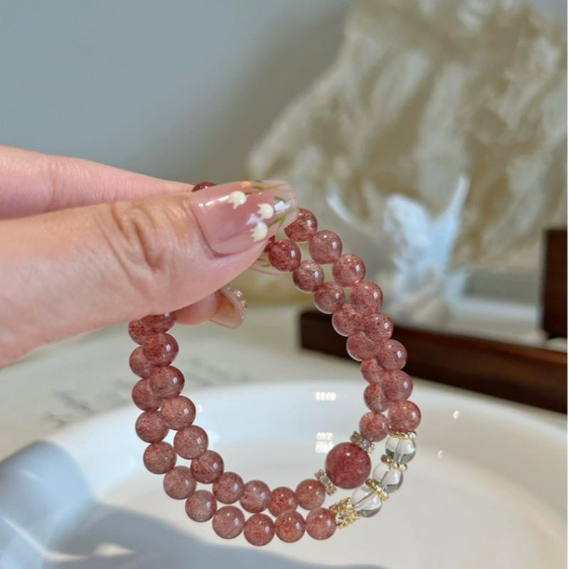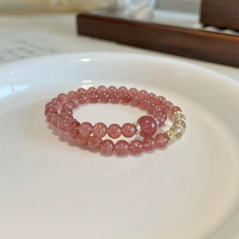 Pulsera de Cristal de Fresa de Doble Círculo para Mujer Cristal Natural Joyería de Moda Nicho de Alta Gama Exquisito Regalo Pulsera para Mujer