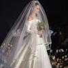 Accesorios para Fotos Velo de Novia Vestido de Novia Tocado Velo Corto de Doble Capa Arena Luminosa Velo Shaggy Blanco Puro Arena Accesorios para el Cabello